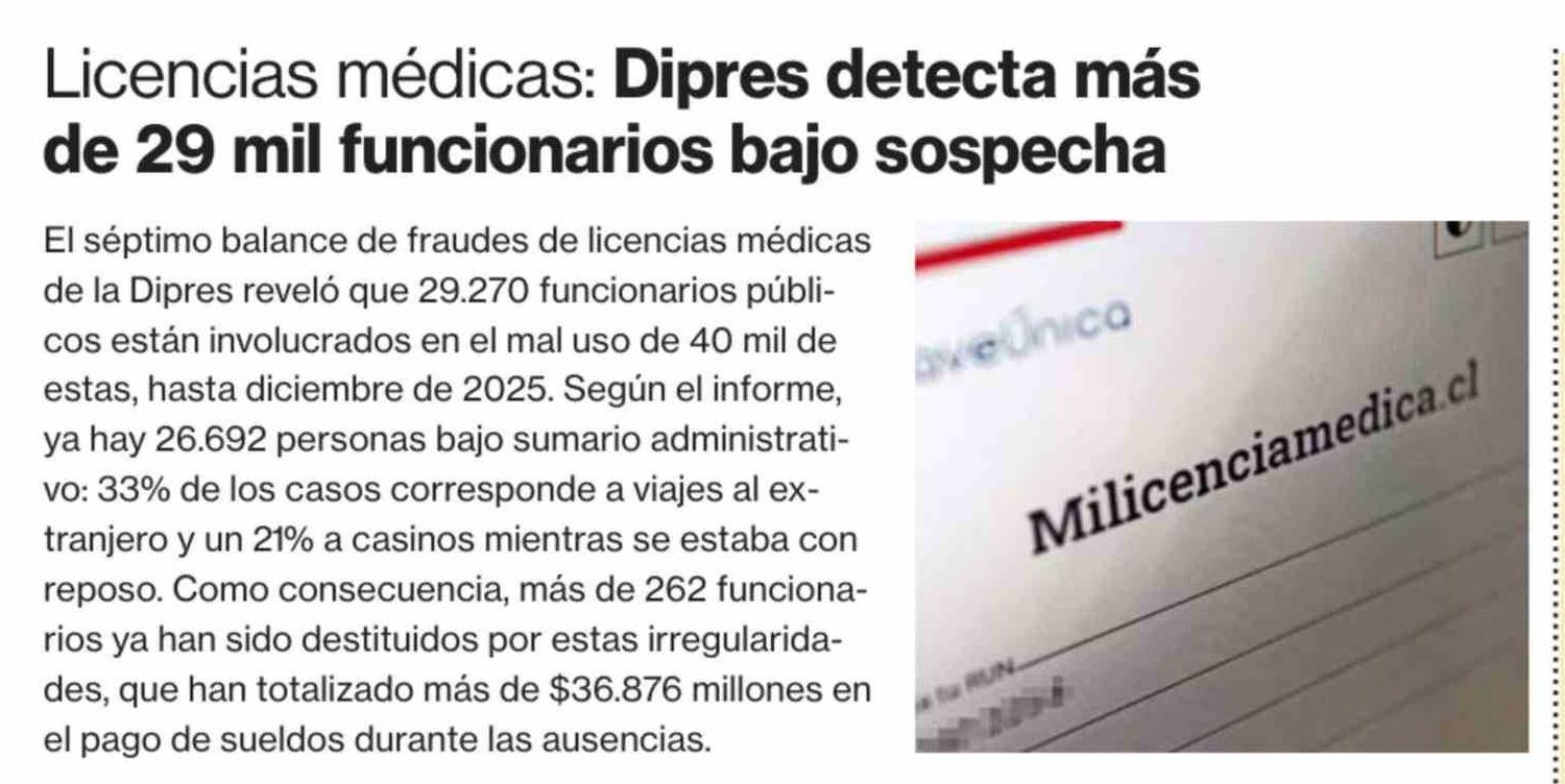 Licencias médicas: Dipres detecta más de 29 mil funcionarios bajo sospecha