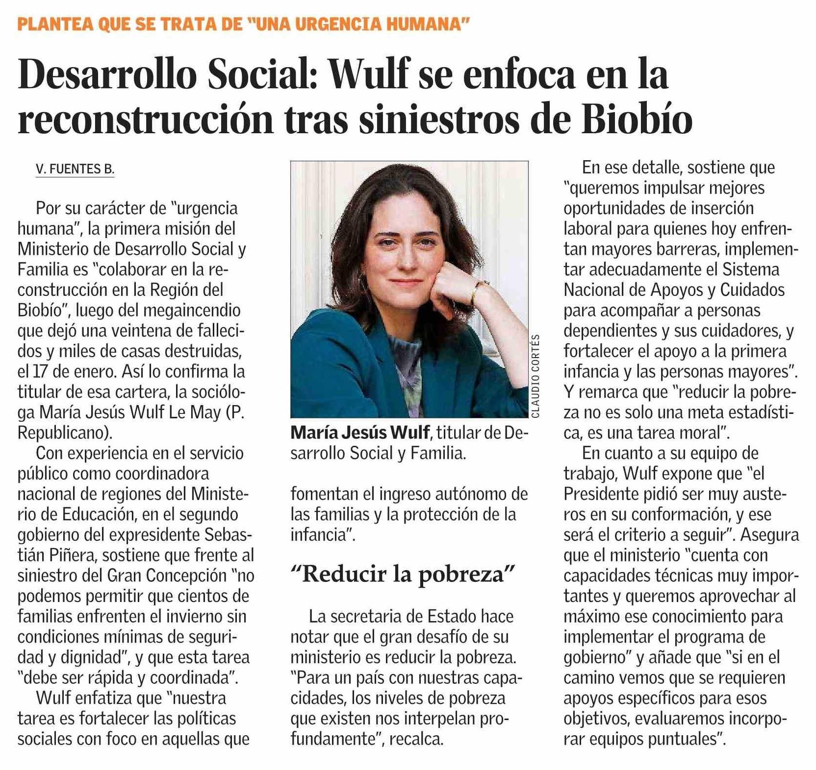 Desarrollo Social: Wulf se enfoca en la reconstrucción tras siniestros de Biobío