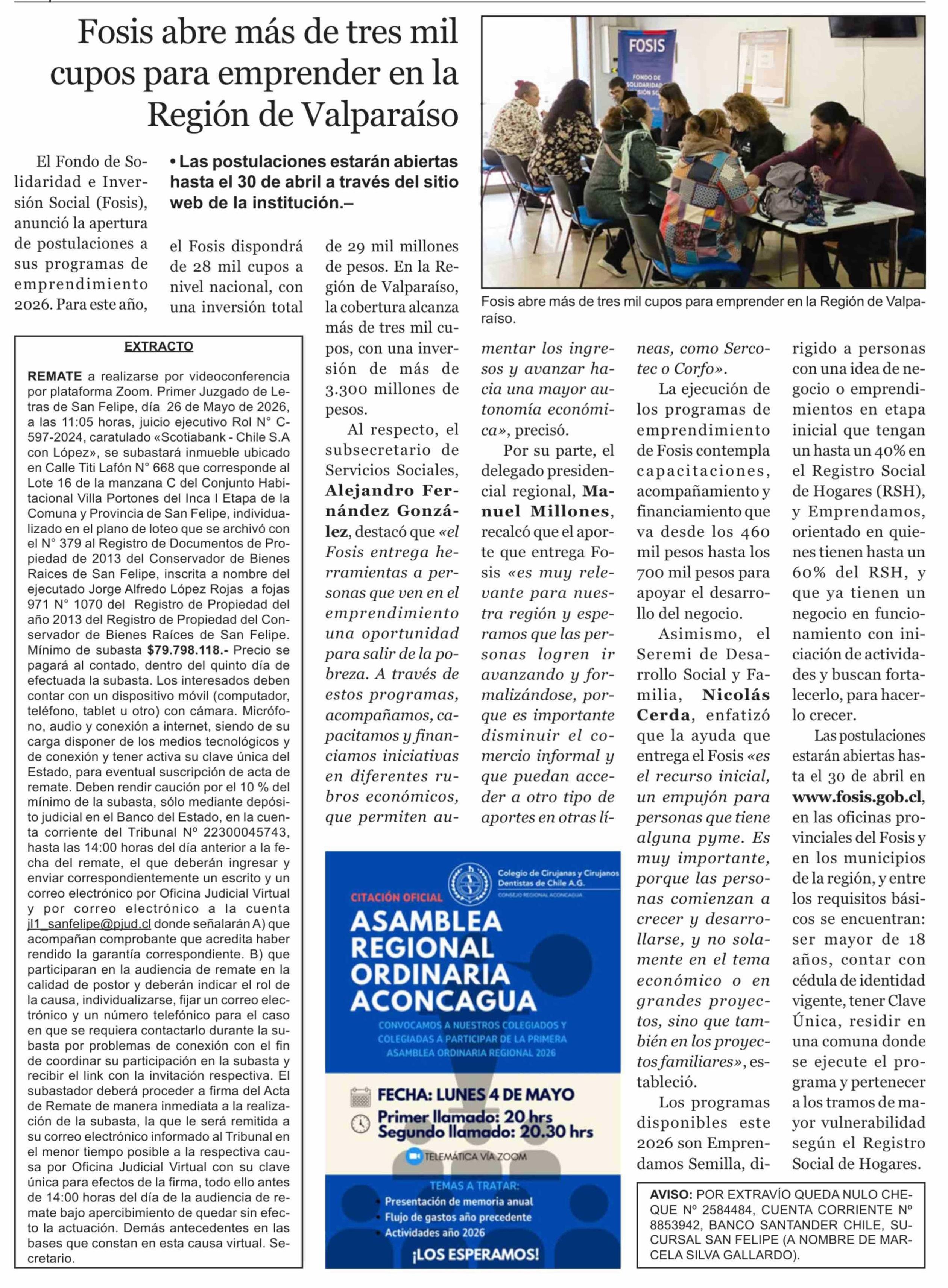 Fosis abre más de tres mil cupos para emprender en la Región de Valparaíso