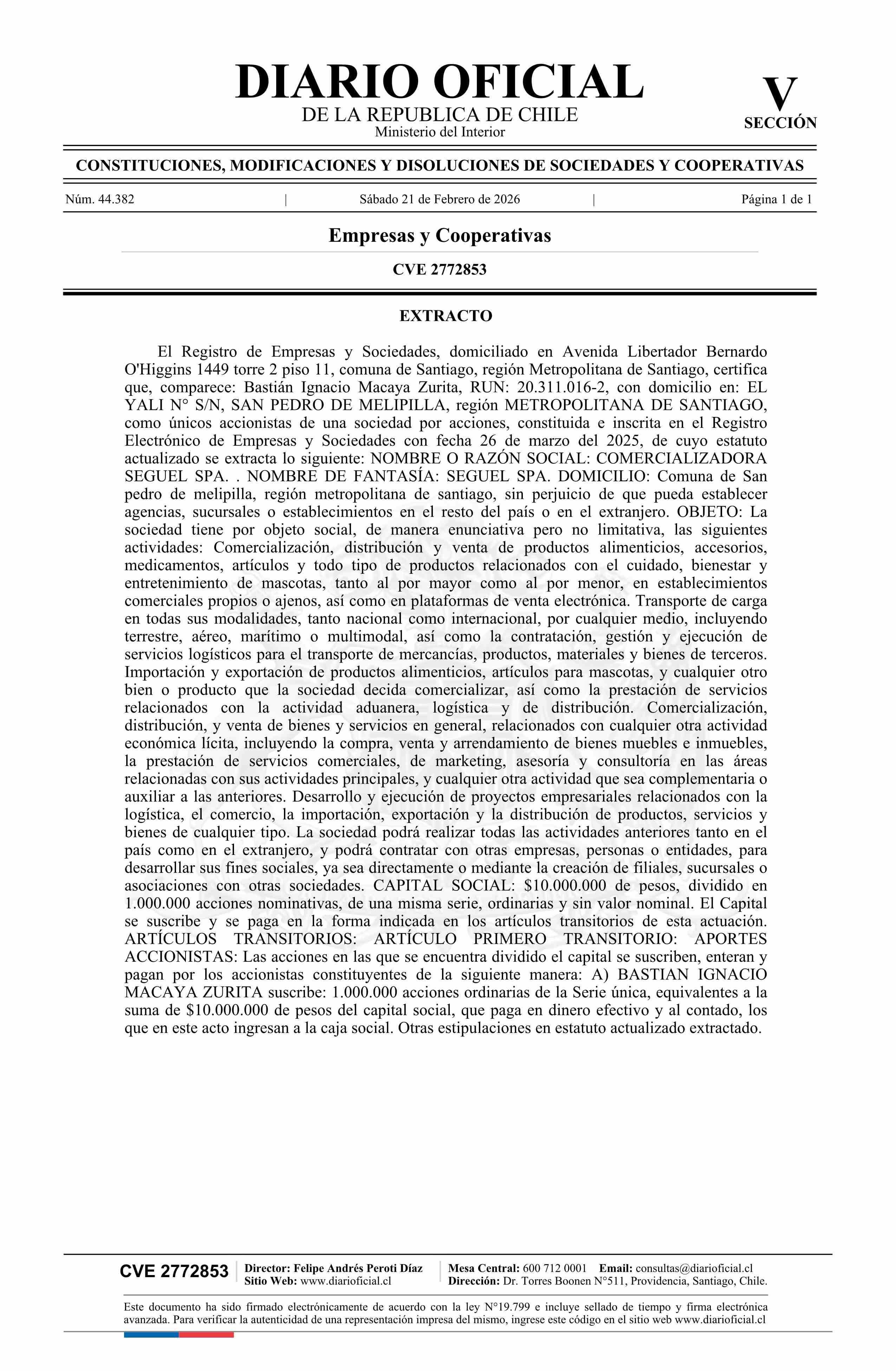 Diario Oficial Edición Electrónica (Diario Oficial de Chile - 5 Empresas Y Cooper)