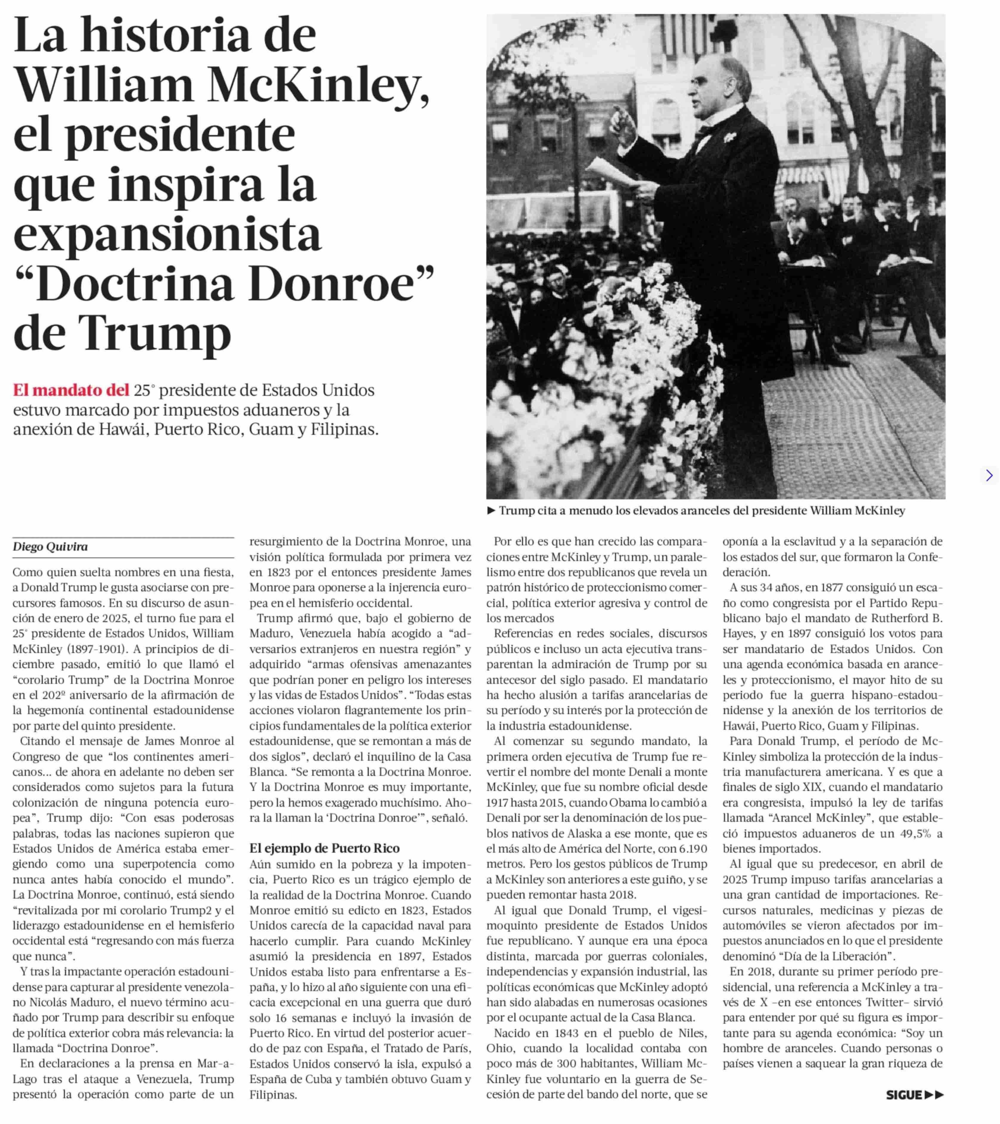 Título: La historia de William Mckinley, el presidente que inspira la expansionista "Doctrina Donroe" de Trump