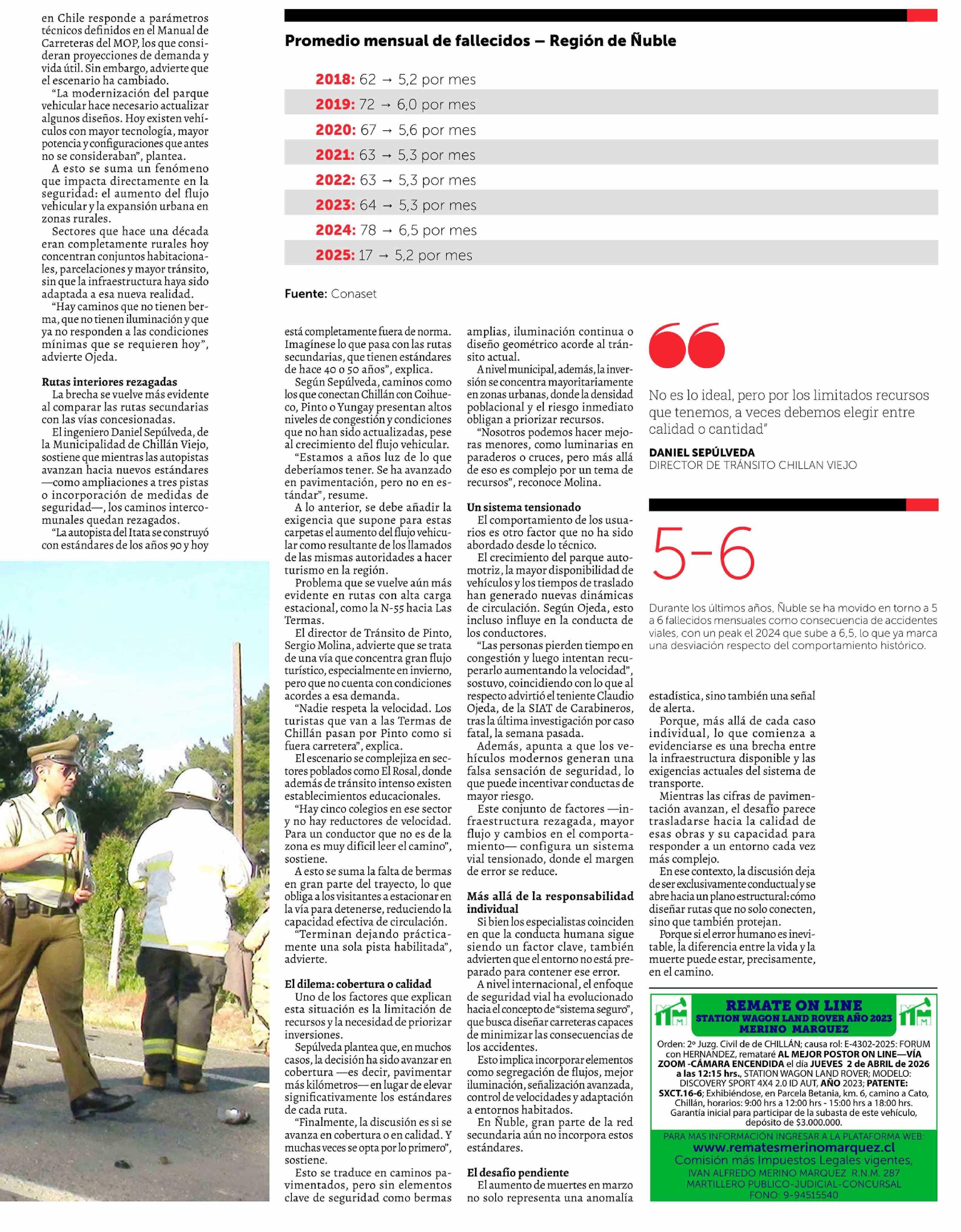 Rutas que no evolucionan: el factor estructural detrás del aumento de muertes en Nuble