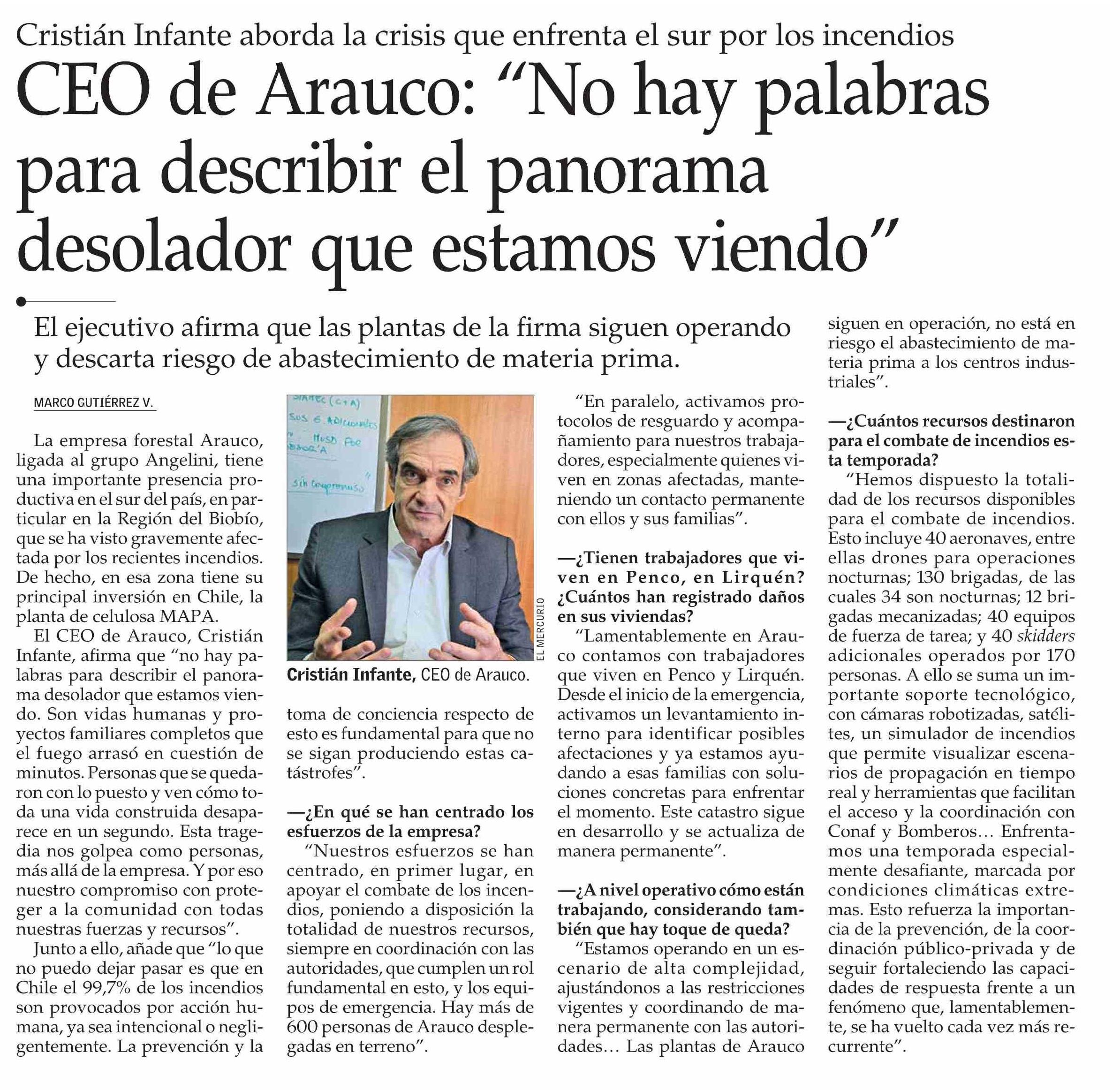 CEO de Arauco: “No hay palabras para describir el panorama desolador que estamos viendo”