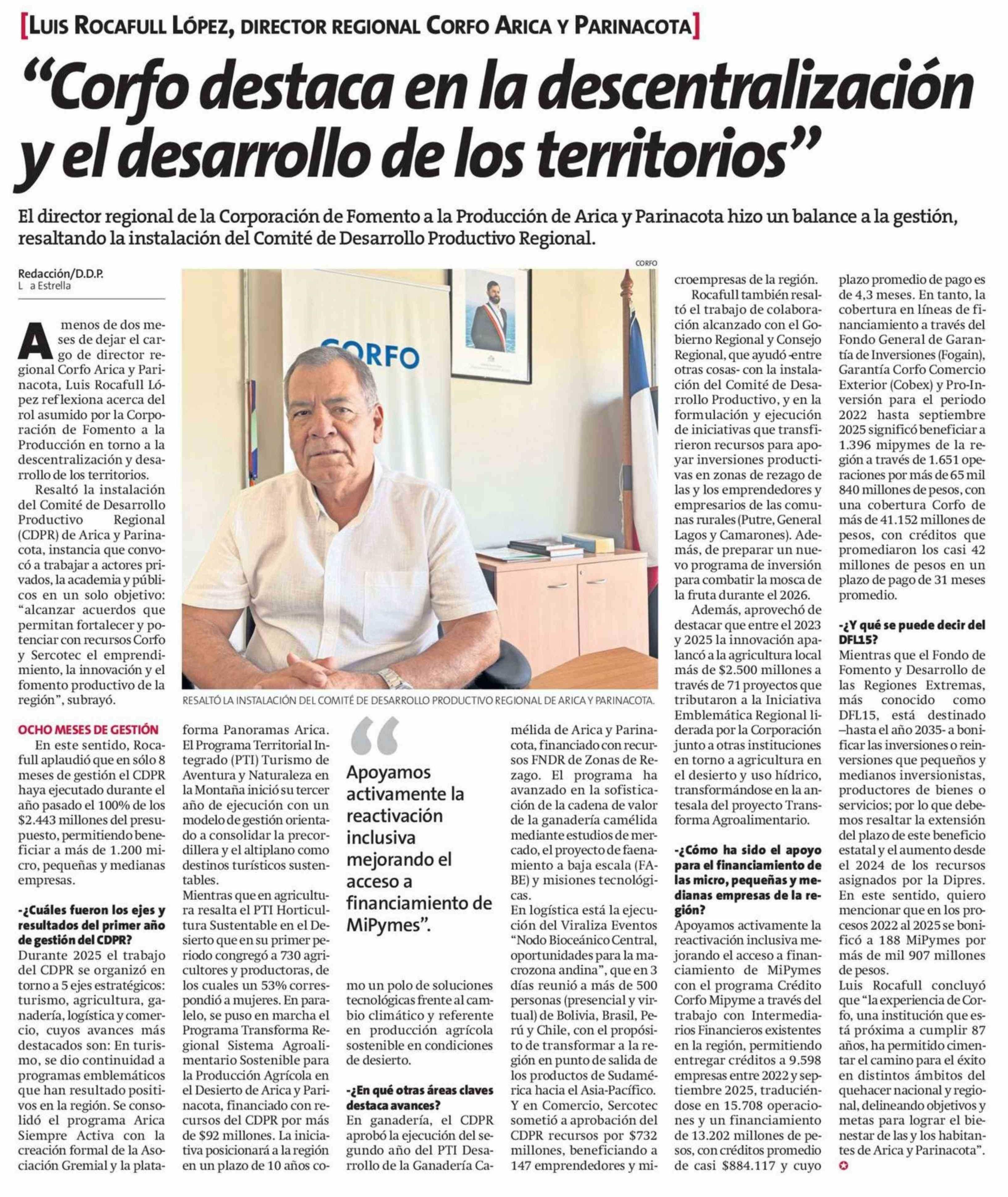 "Corfo destaca en la descentralización y el desarrollo de los territorios"