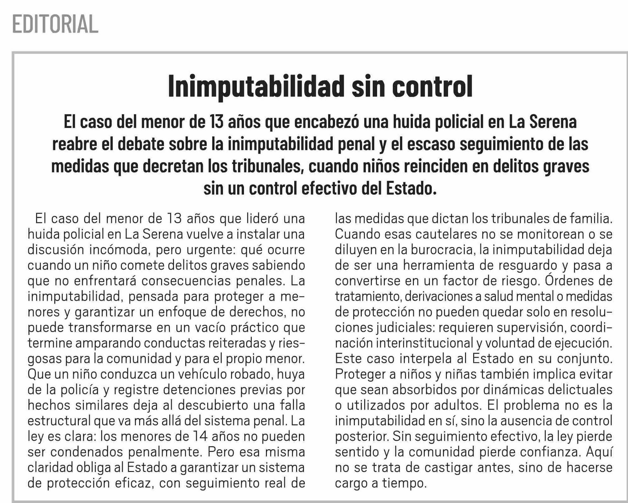 Título: Editorial: Inimputabilidad sin control