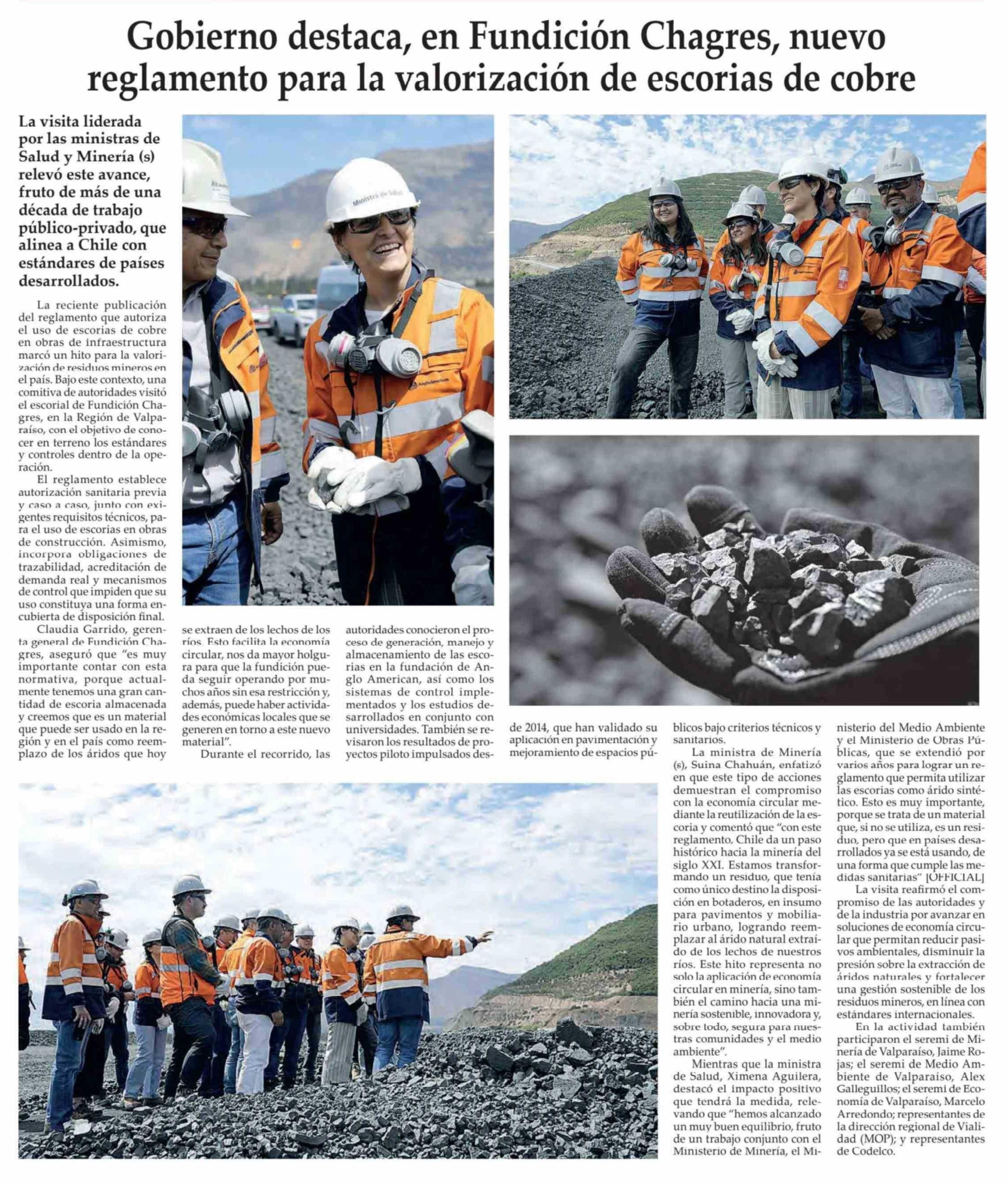 Gobierno destaca, en Fundición Chagres, nuevo reglamento para la valorización de escorias de cobre