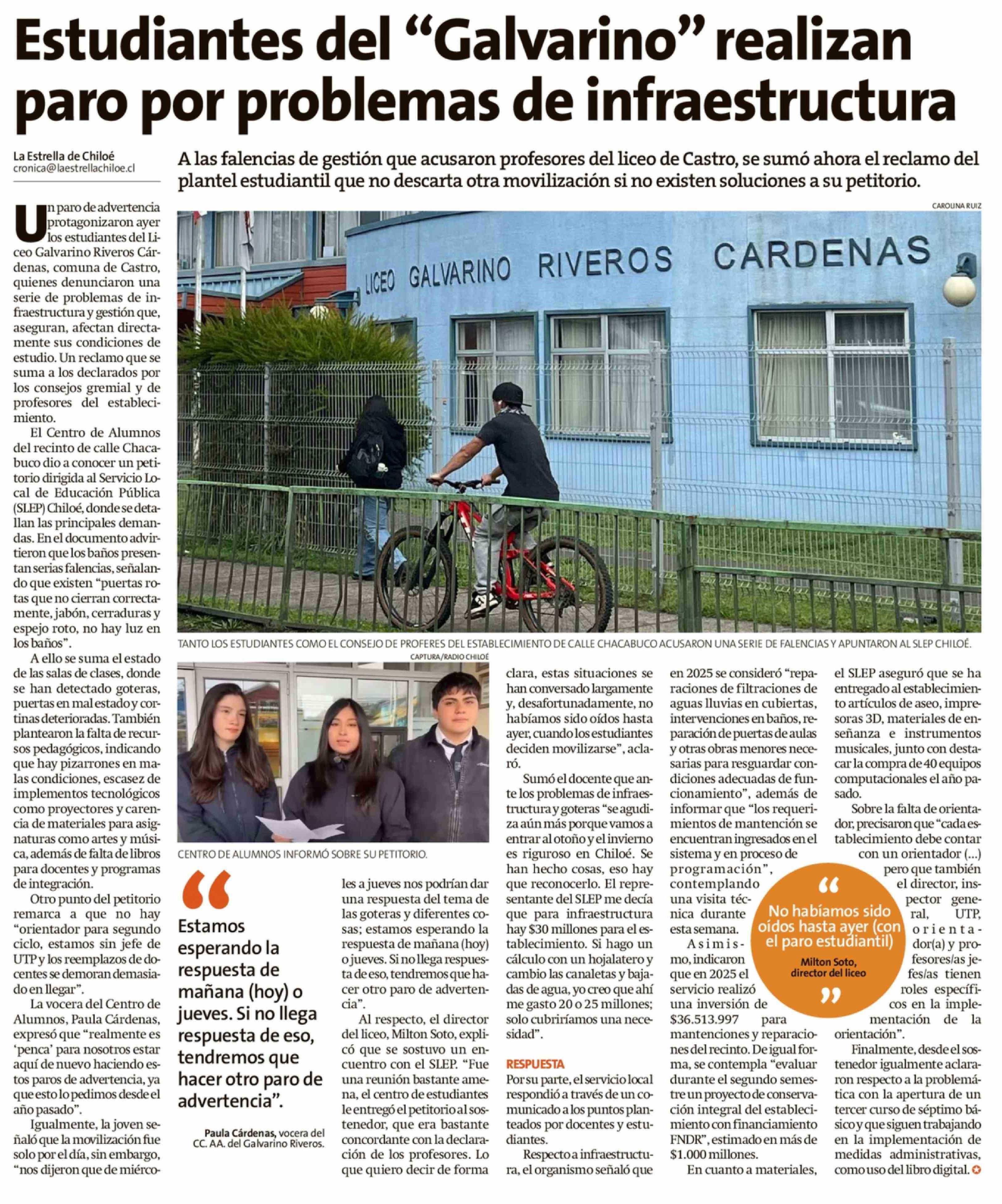 Estudiantes del "Galvarino" realizan paro por problemas de infraestructura
