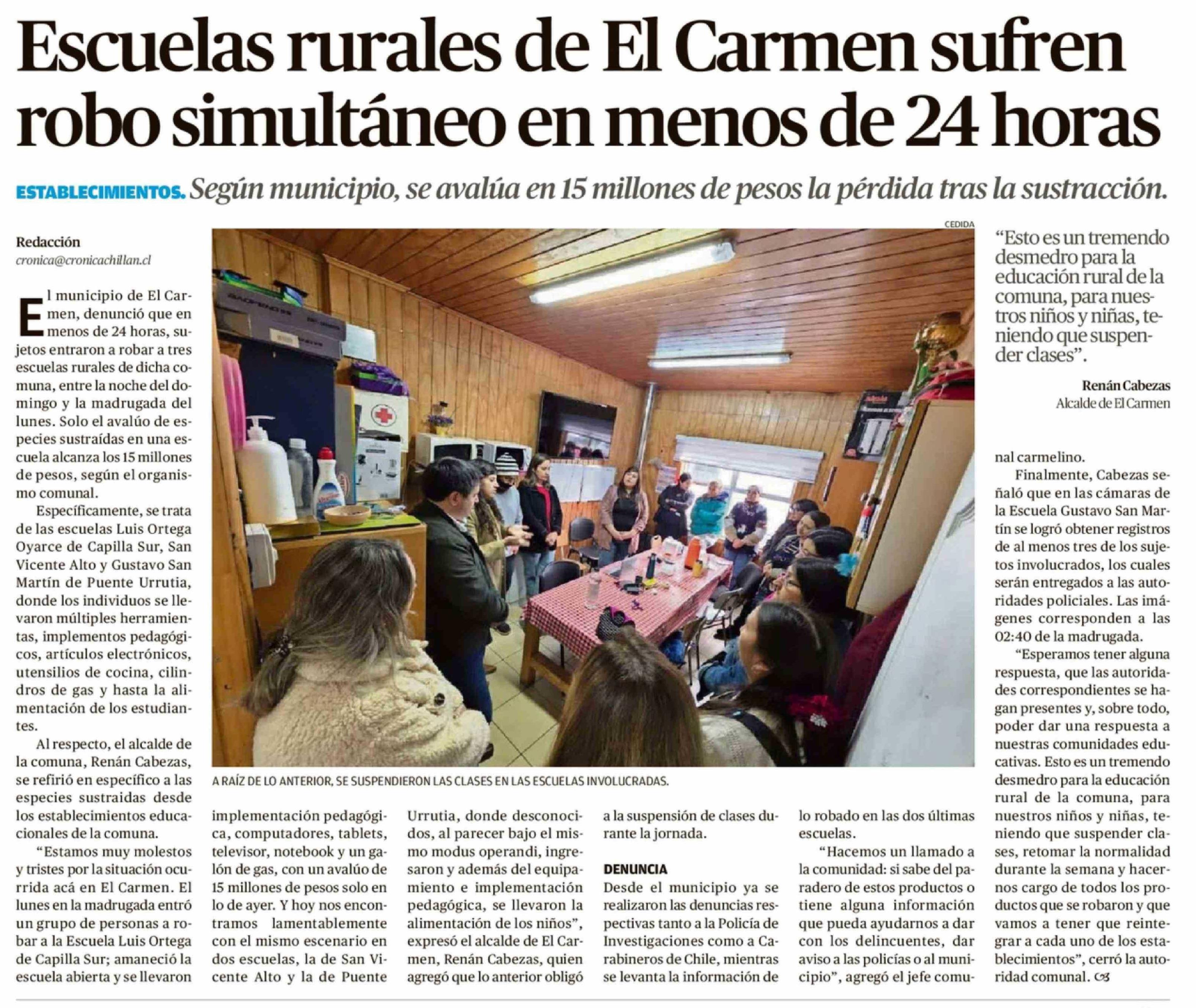 Escuelas rurales de El Carmen sufren robo simultáneo en menos de 24 horas