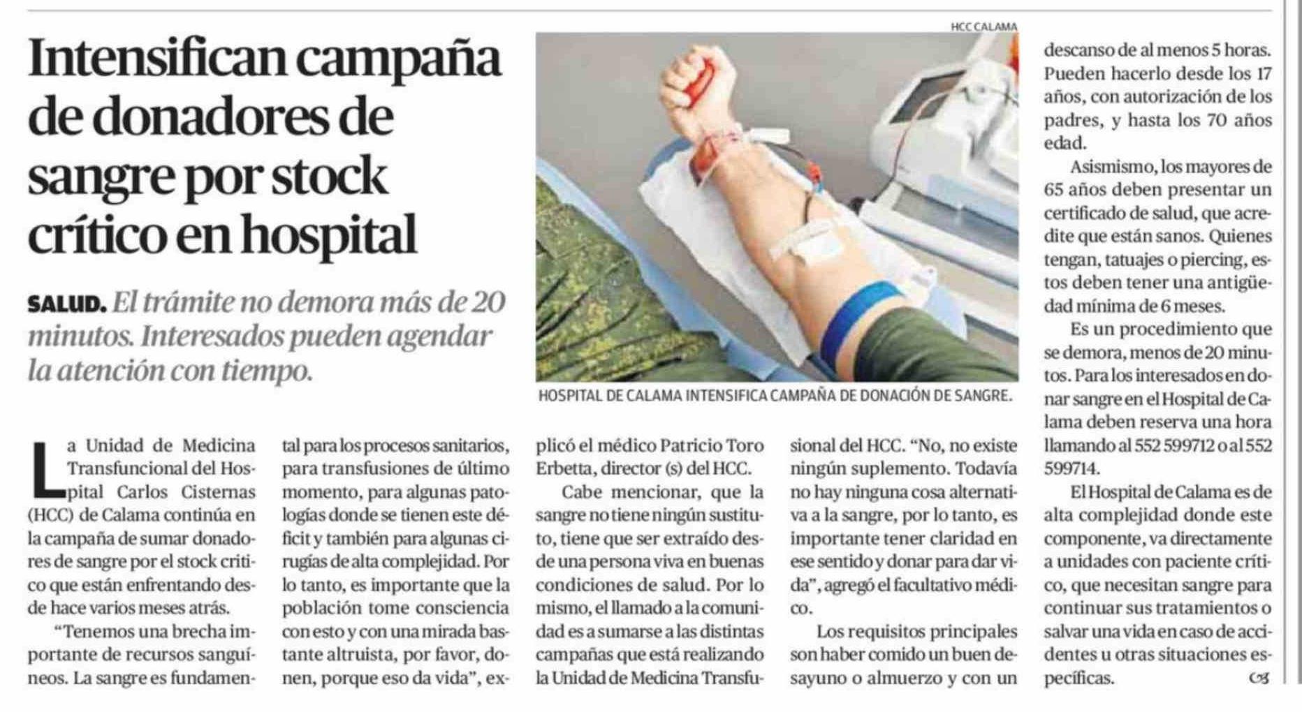 Intensifican campaña de donadores de sangre por stock crítico en hospital
