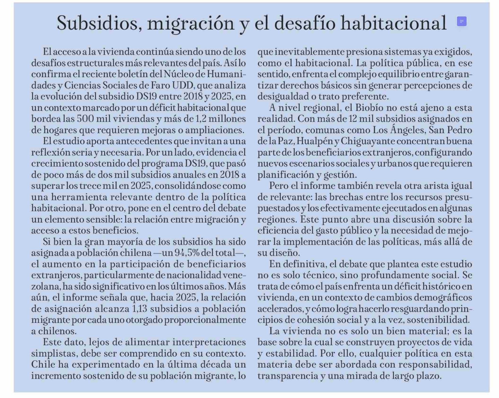 EDITORIAL: Subsidios, migración y el desafío habitacional