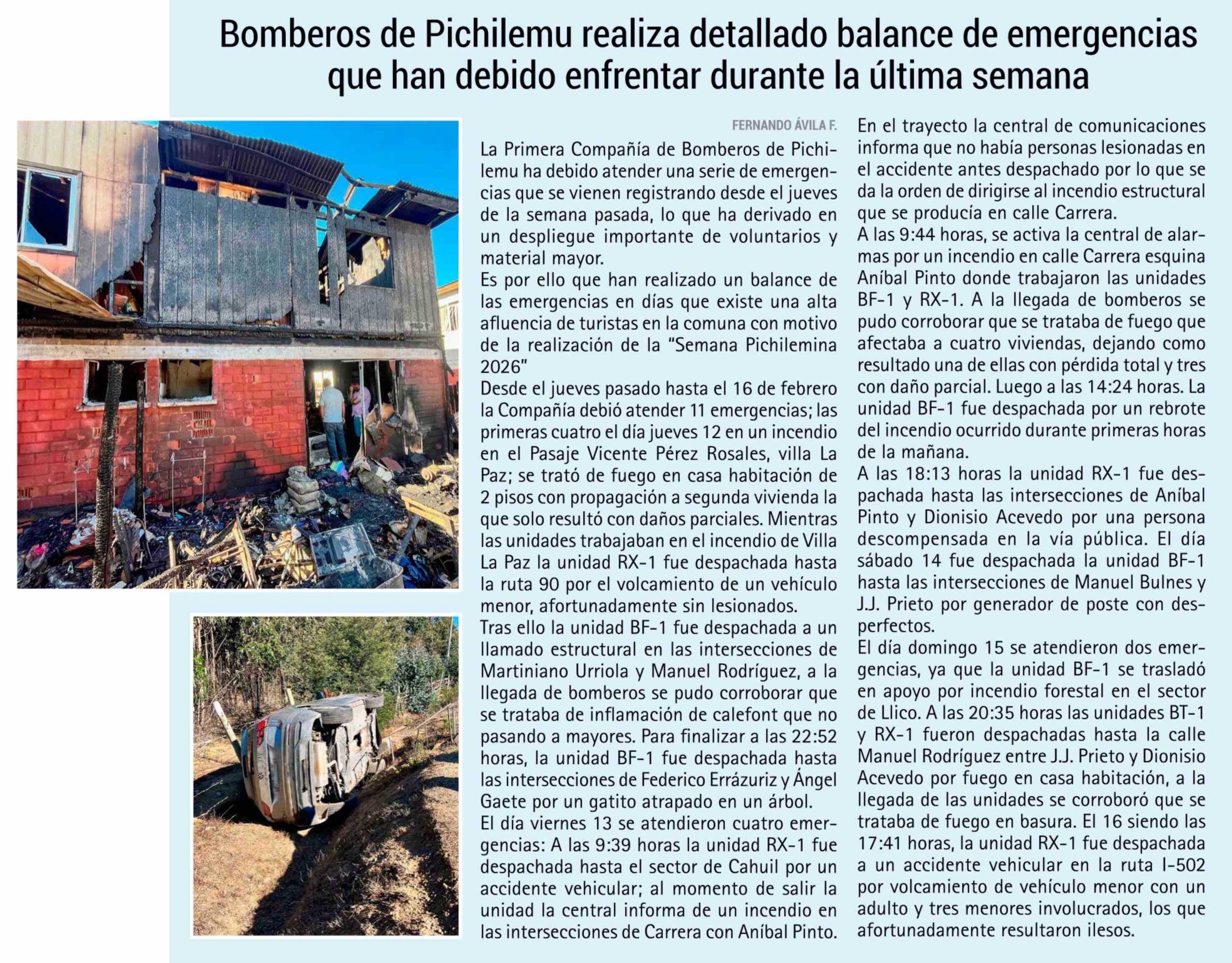 Bomberos de Pichilemu realiza detallado balance de emergencias que han debido enfrentar durante la última semana