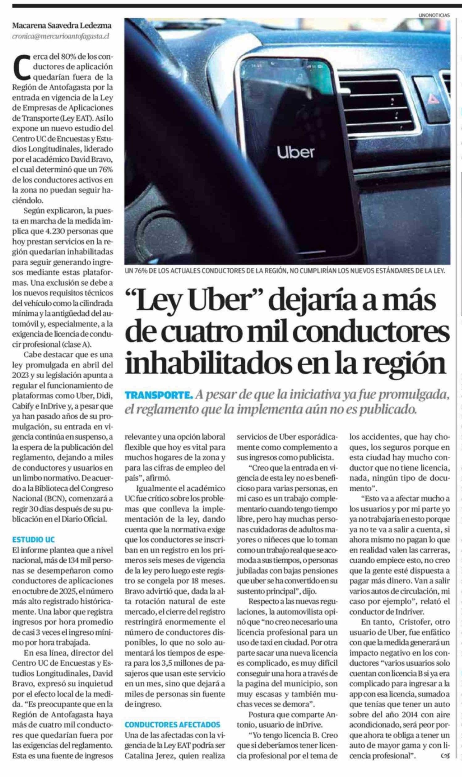 Título: "Ley Uber" dejaría a más de cuatro mil conductores inhabilitados en la región