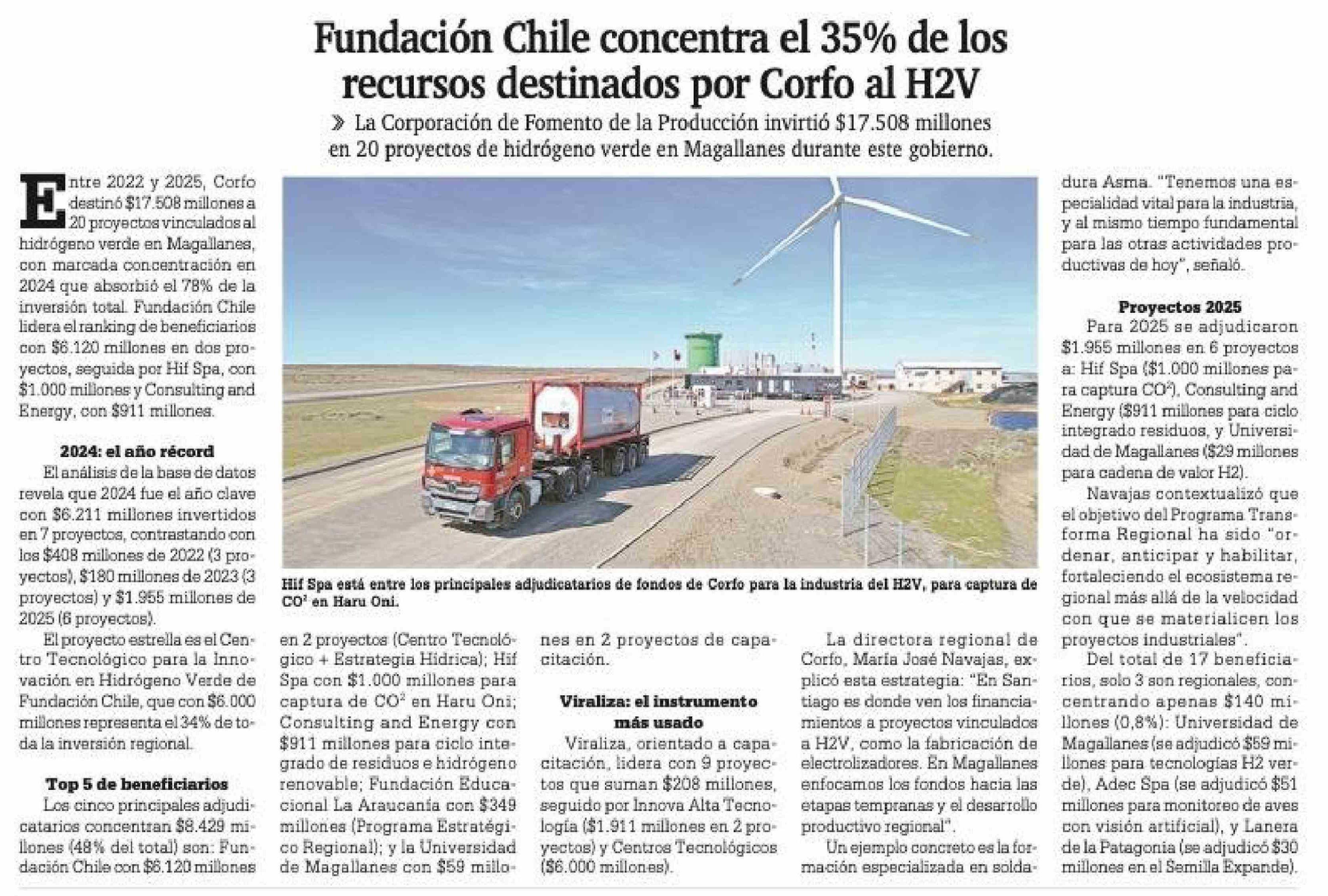 Fundación Chile concentra el 35% de los recursos destinados por Corfo al H2V
