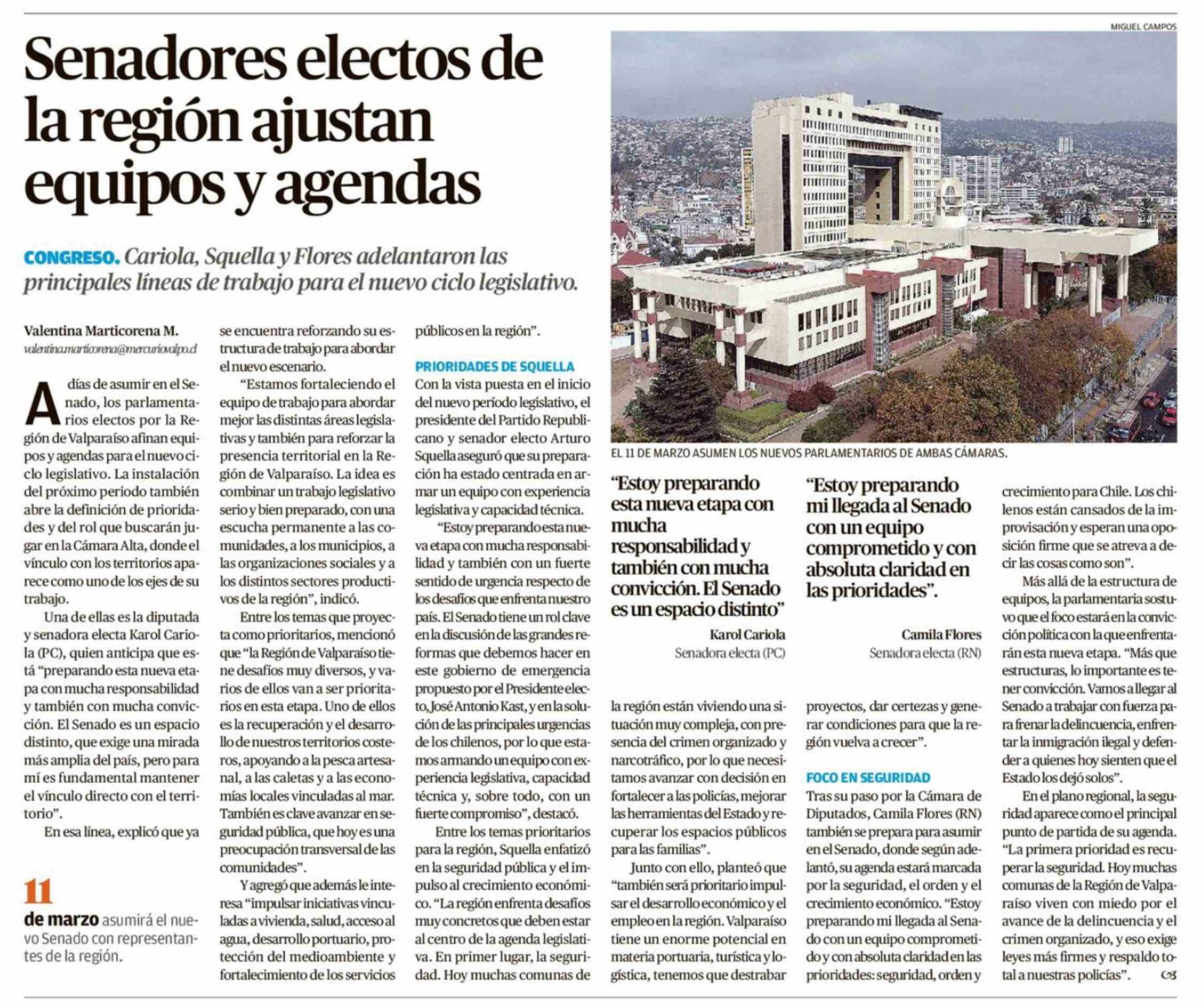 Senadores electos de la región ajustan equipos y agendas