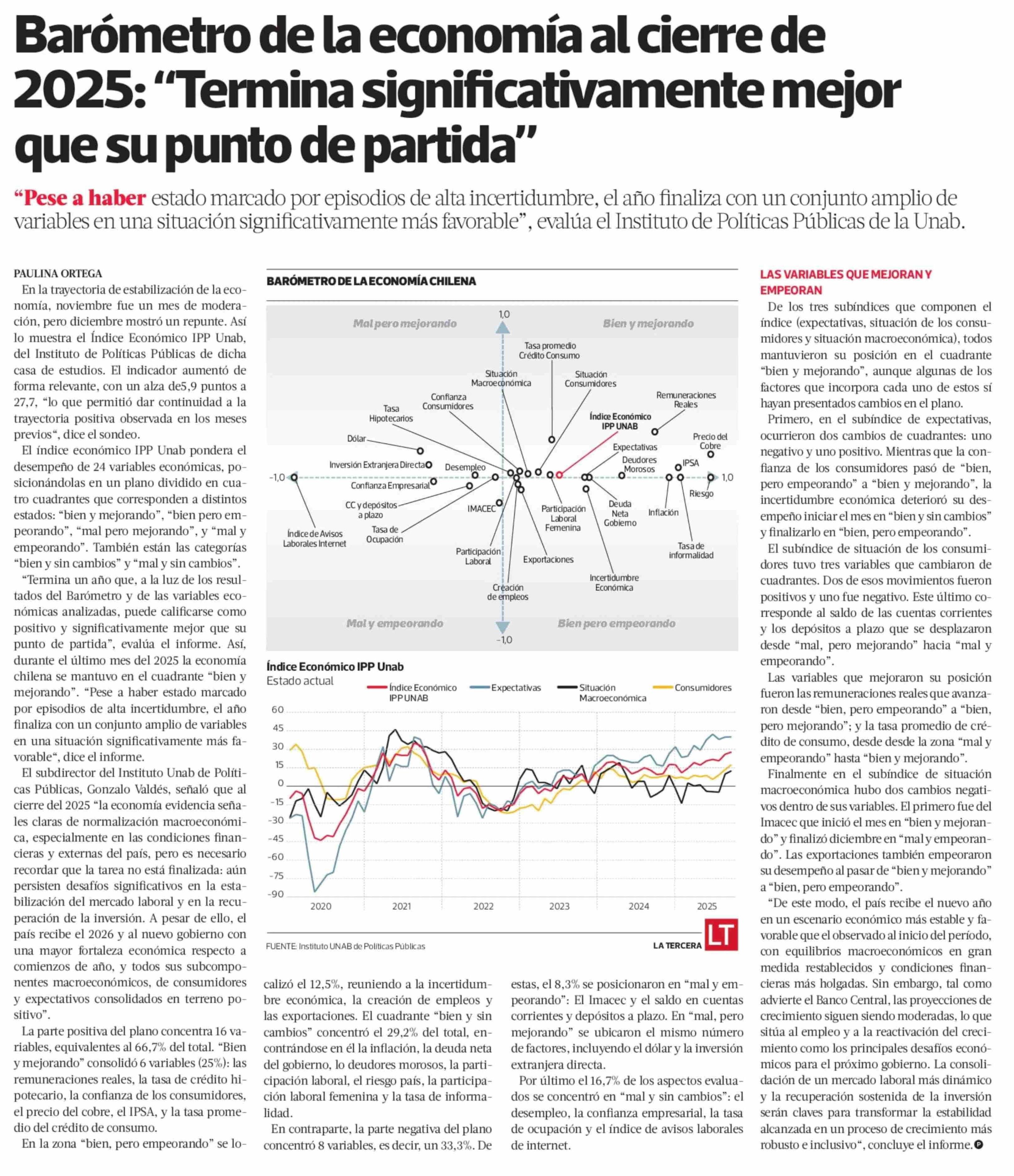 Barómetro de la economía al cierre de 2025: "Termina significativamente mejor que su punto de partida"