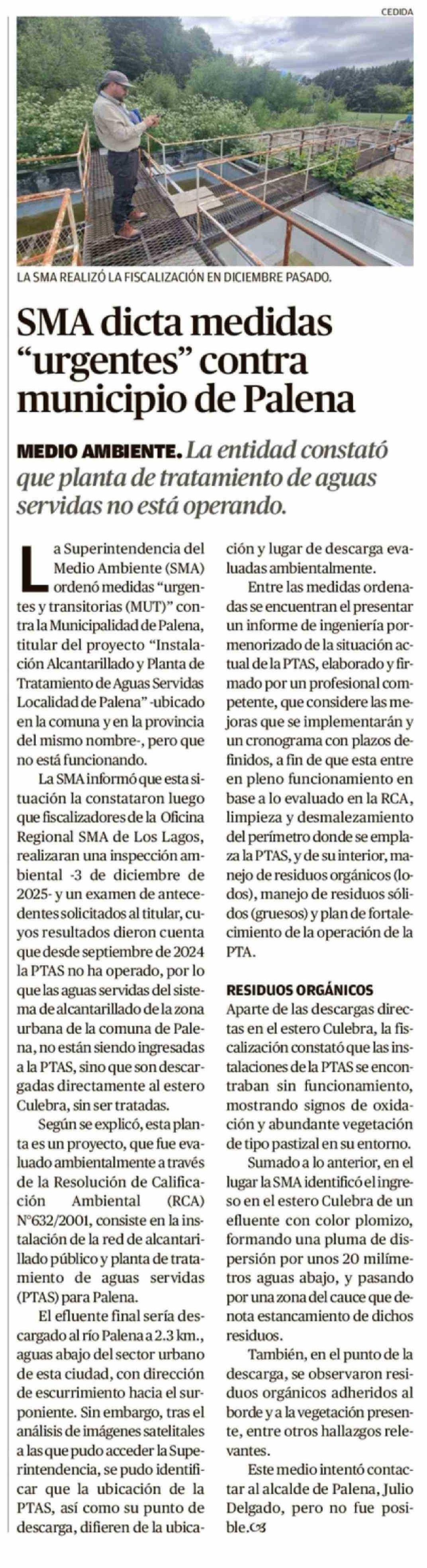 SMA dicta medidas "urgentes" contra municipio de Palena
