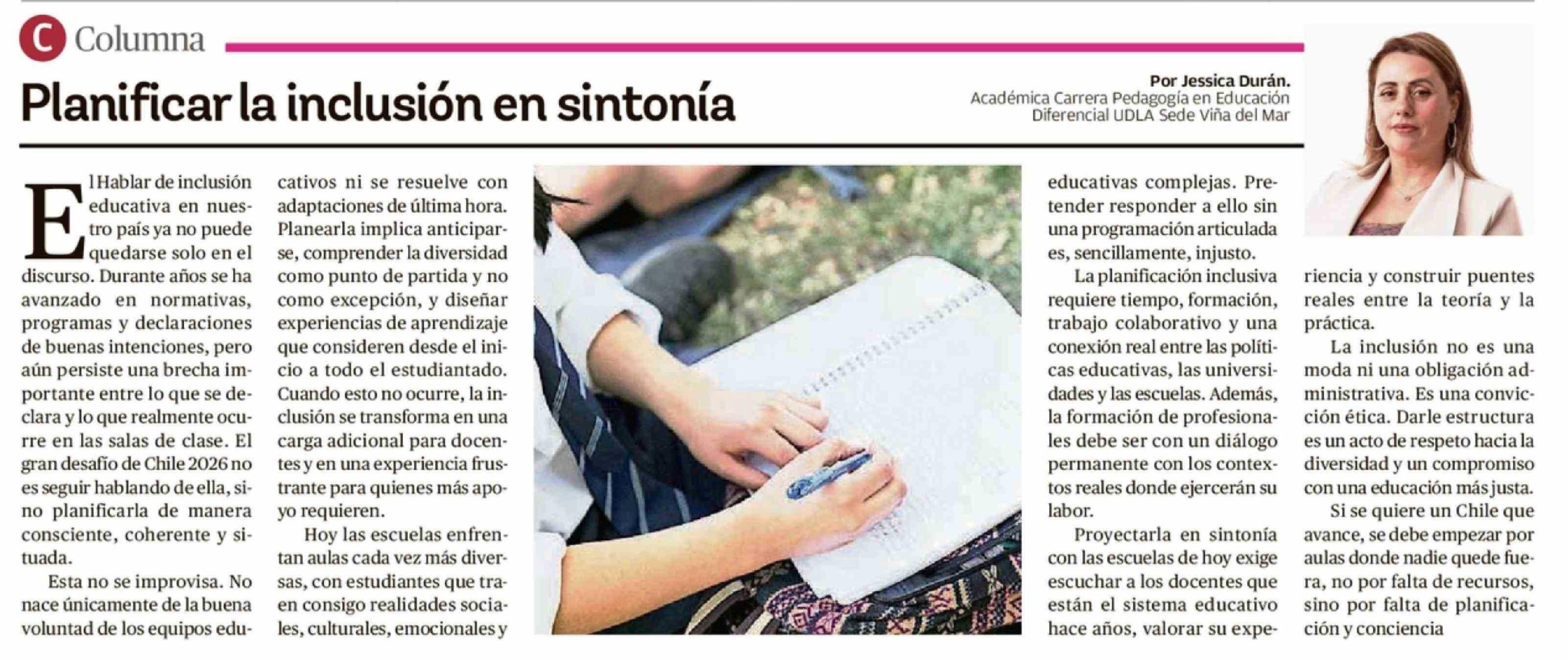 Columnas de Opinión: Planificar la inclusión en sintonía