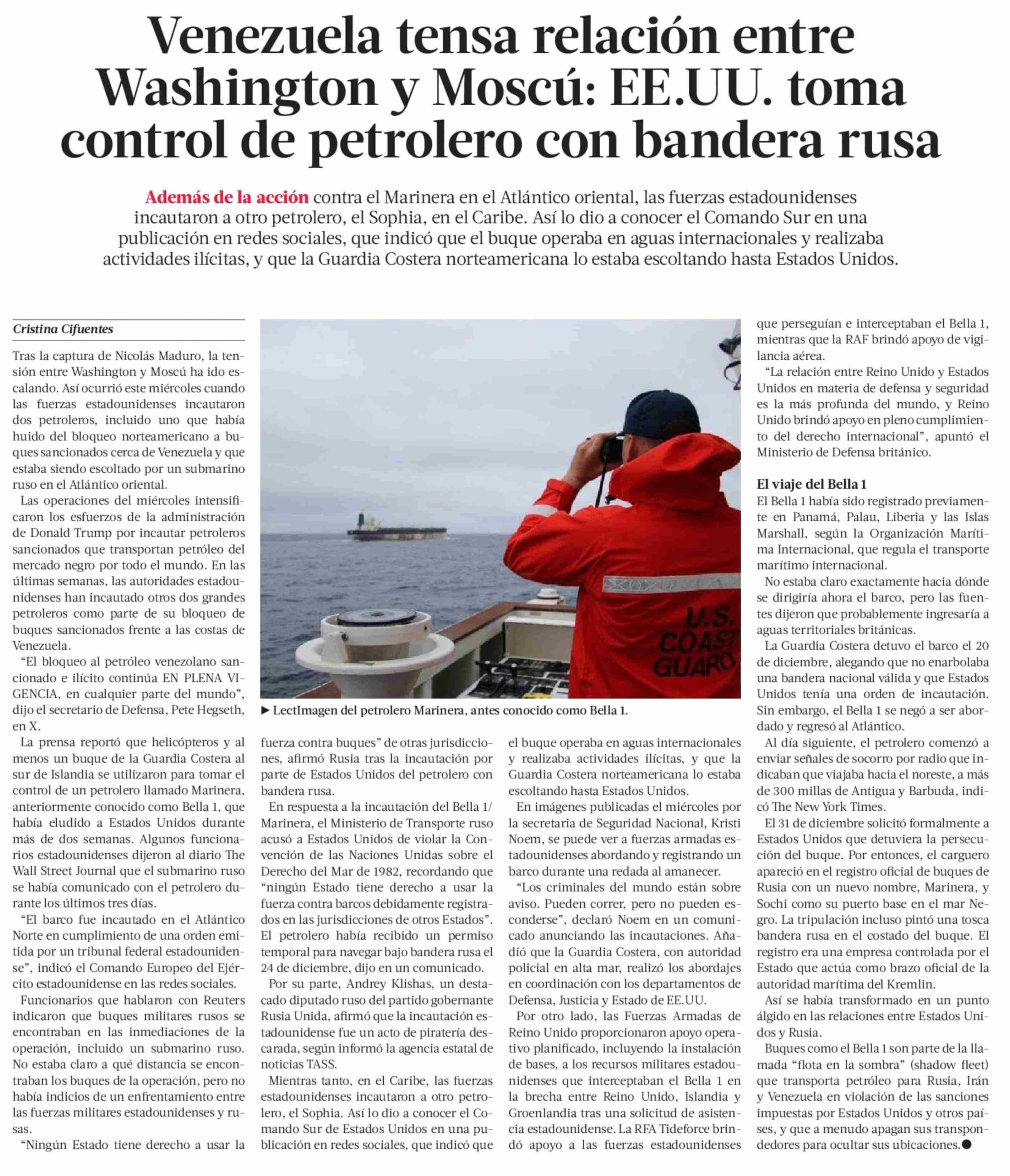Venezuela tensa relación entre Washington y Moscú: EE.UU. toma control de petrolero con bandera rusa