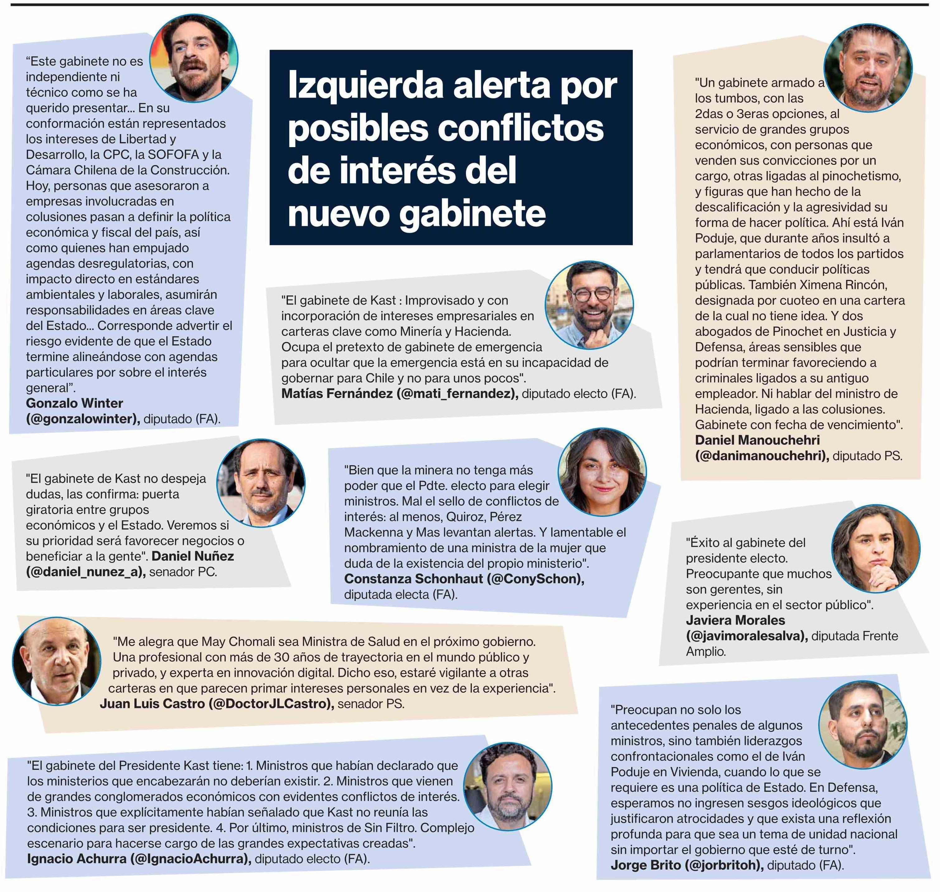 Izquierda alerta por posibles conflictos de interés del nuevo gabinete