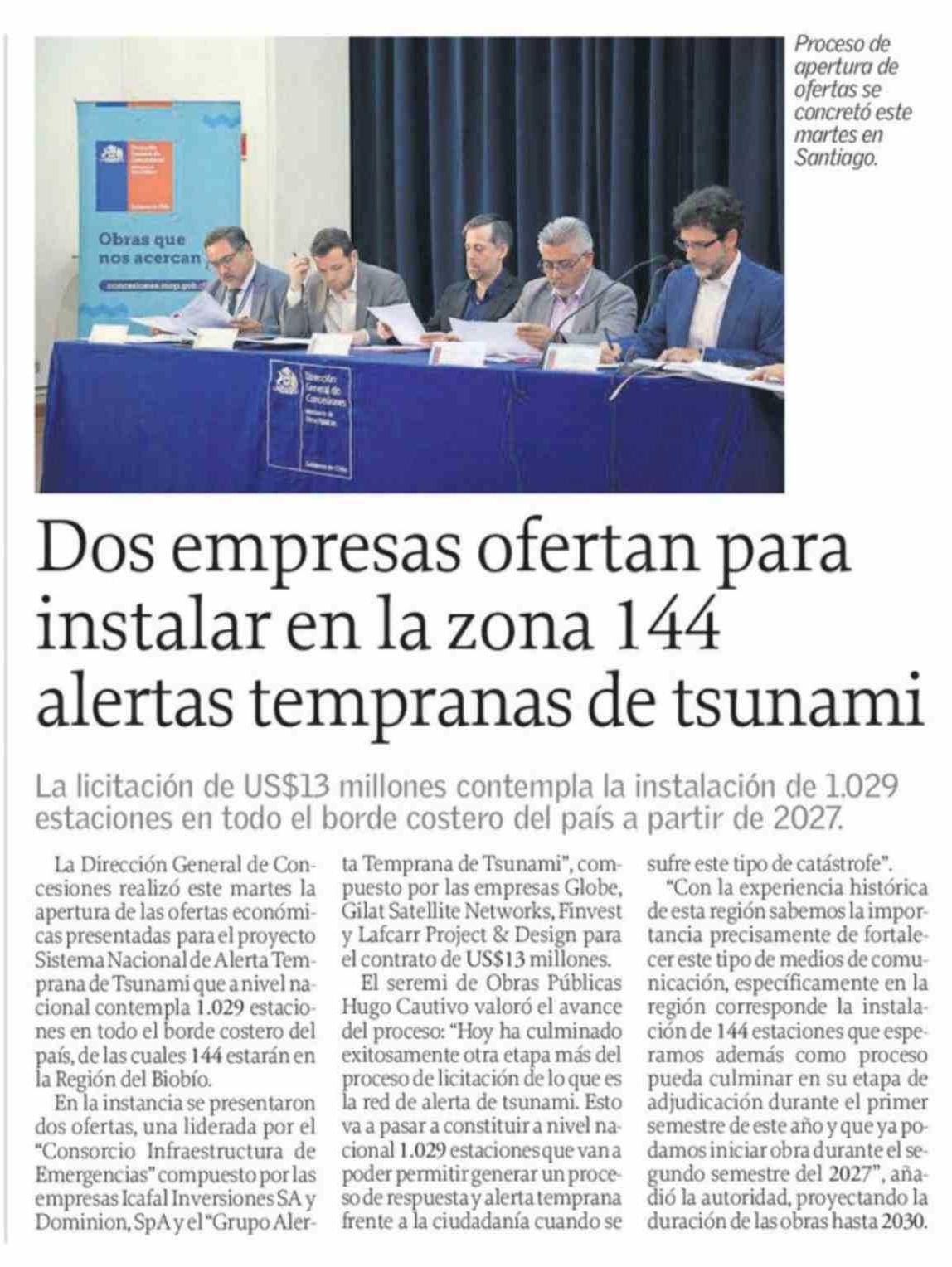 Dos empresas ofertan para instalar en la zona 144 alertas tempranas de tsunami