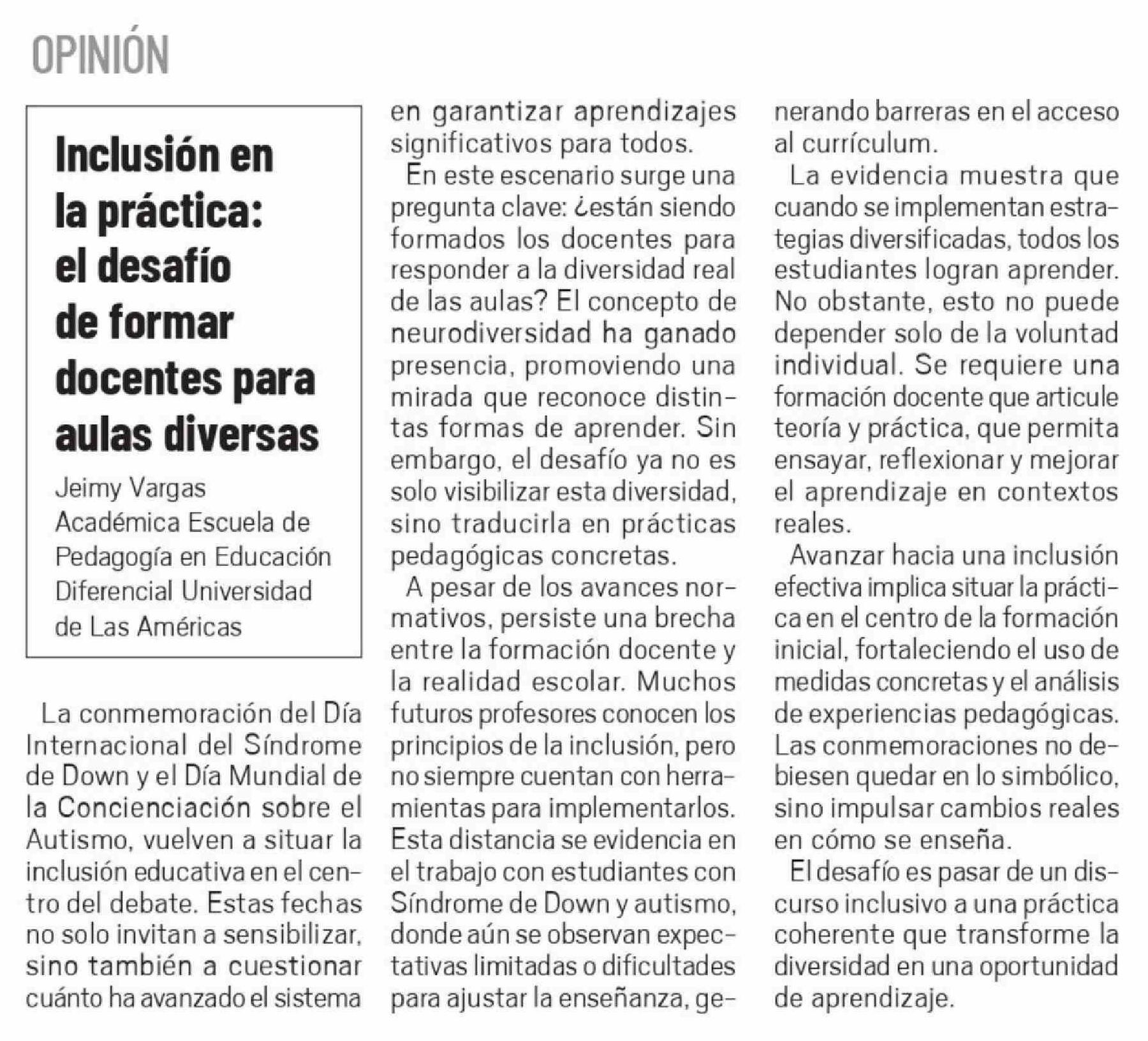 Columnas de Opinión: Inclusión en la práctica: el desafío de formar docentes para aulas diversas