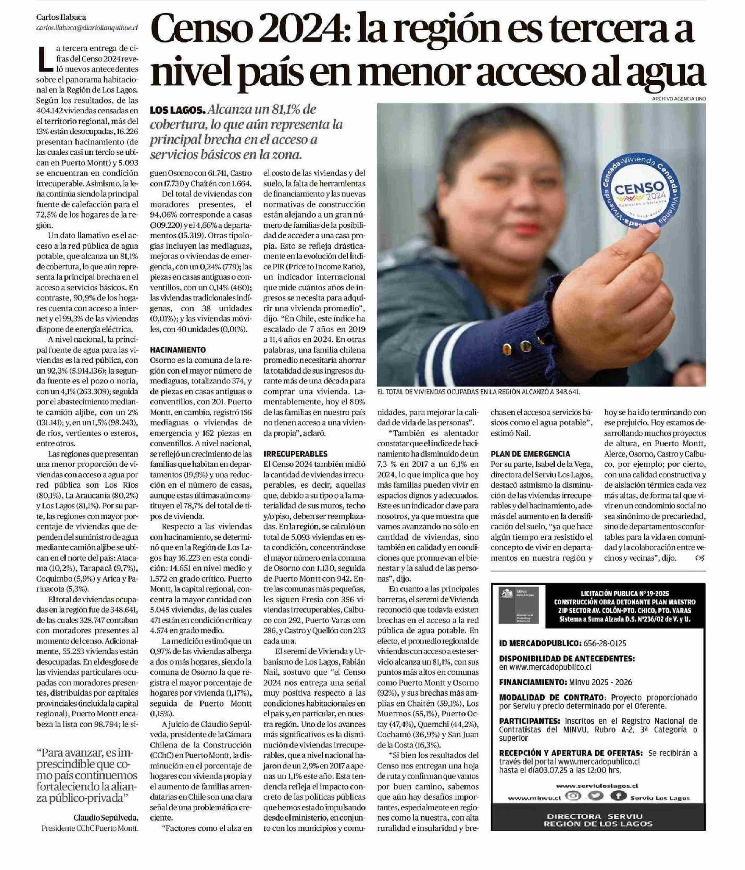 Censo 2024: la región es tercera a nivel país en menor acceso al agua