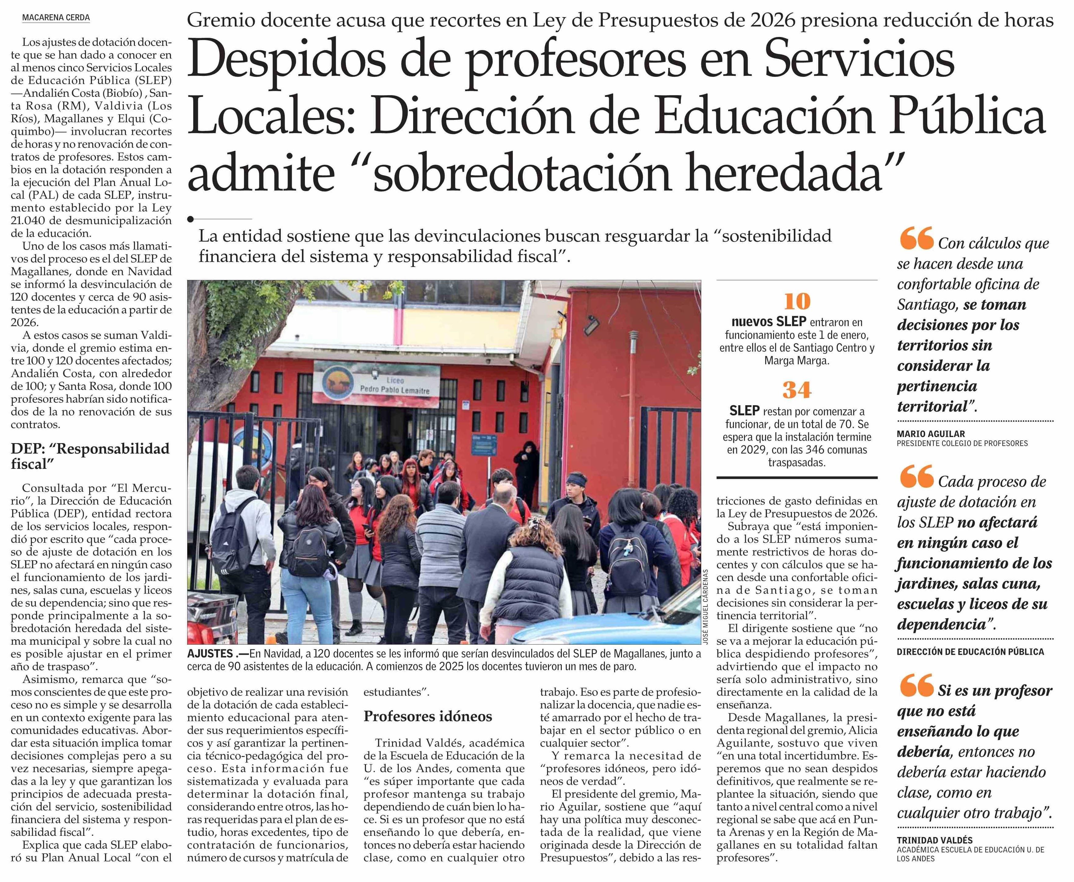 Despidos de profesores en Servicios Locales: Dirección de Educación Pública admite “sobredotación heredada”