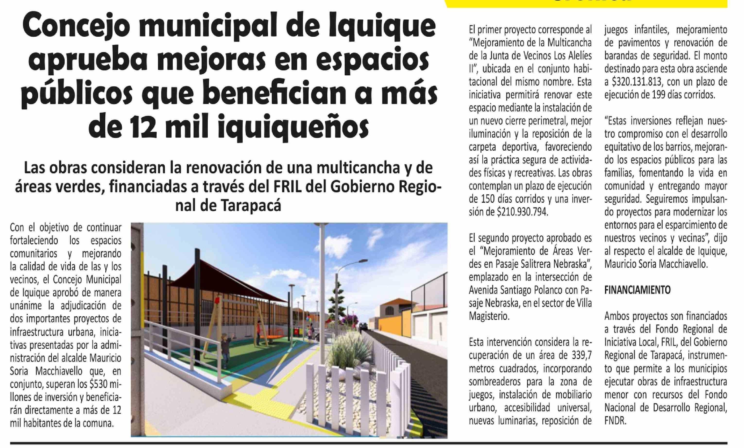 Concejo municipal de Iquique aprueba mejoras en espacios públicos que benefician a más de 12 mil iquiqueños