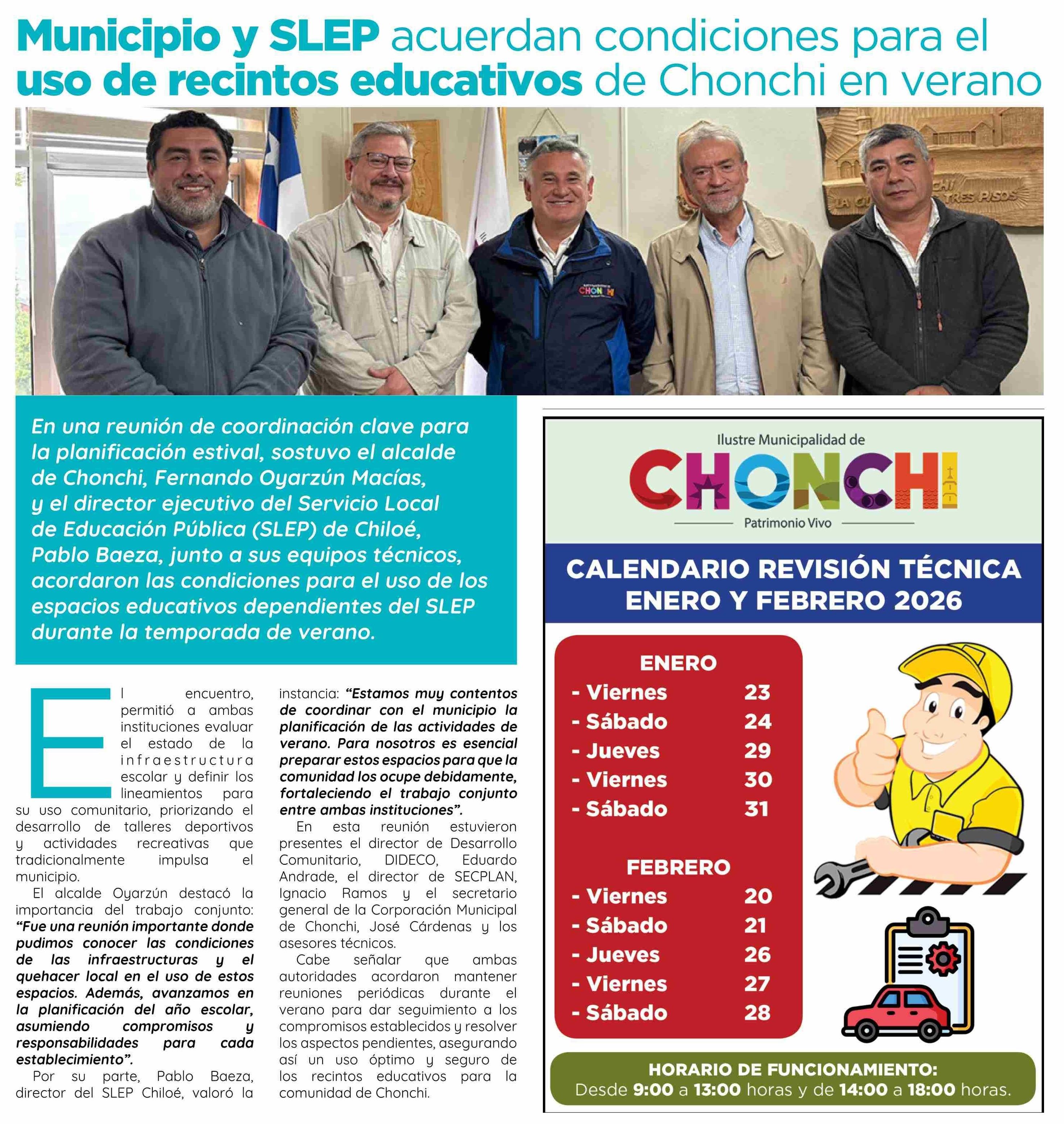 Municipio y SLEP acuerdan condiciones para el uso de recintos educativos de Chonchi en verano