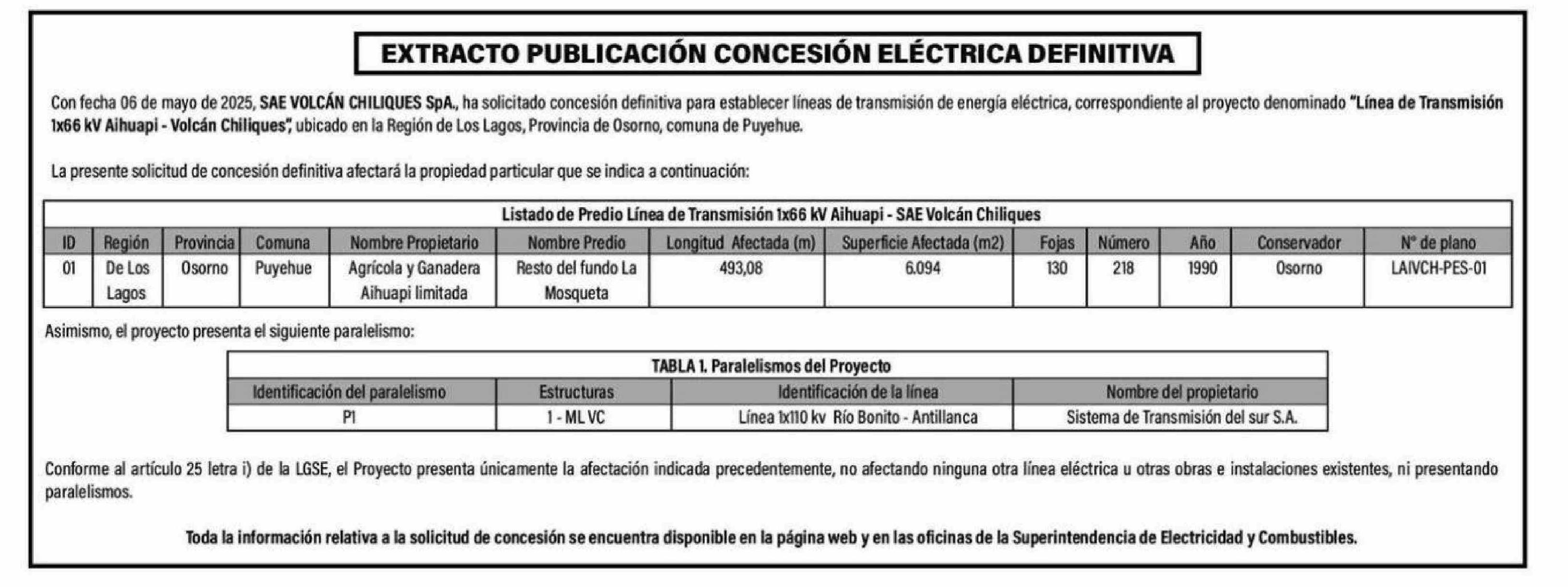 Extractos: EXTRACTO PUBLICACIÓN CONCESIÓN ELÉCTRICA DEFINITIVA