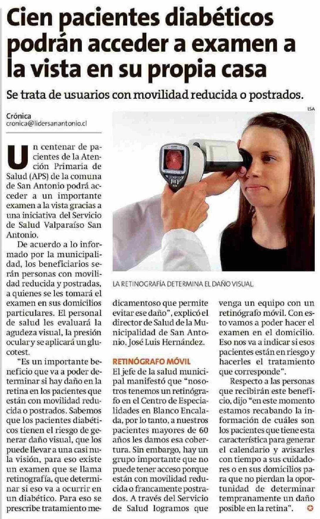 Cien pacientes diabéticos podrán acceder a examen a la vista en su propia casa