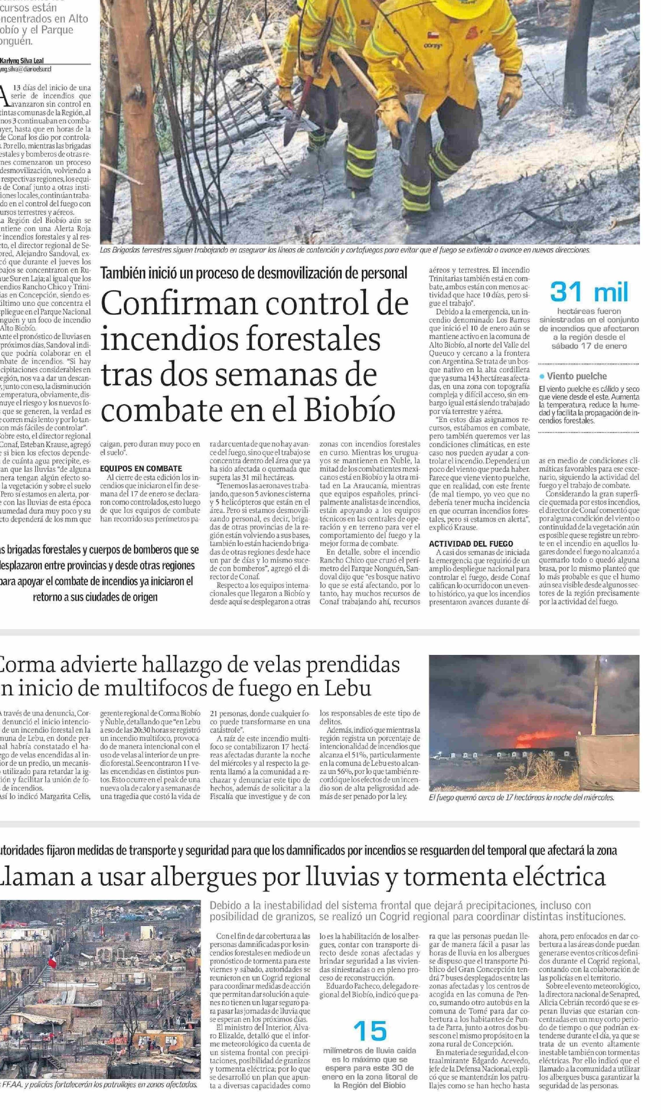 Confirman control de incendios forestales tras dos semanas de combate en el Biobío