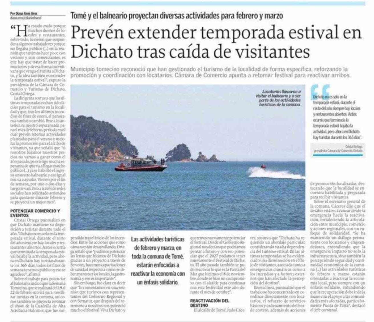 Título: Prevén extender temporada estival en Dichato tras caída de visitantes