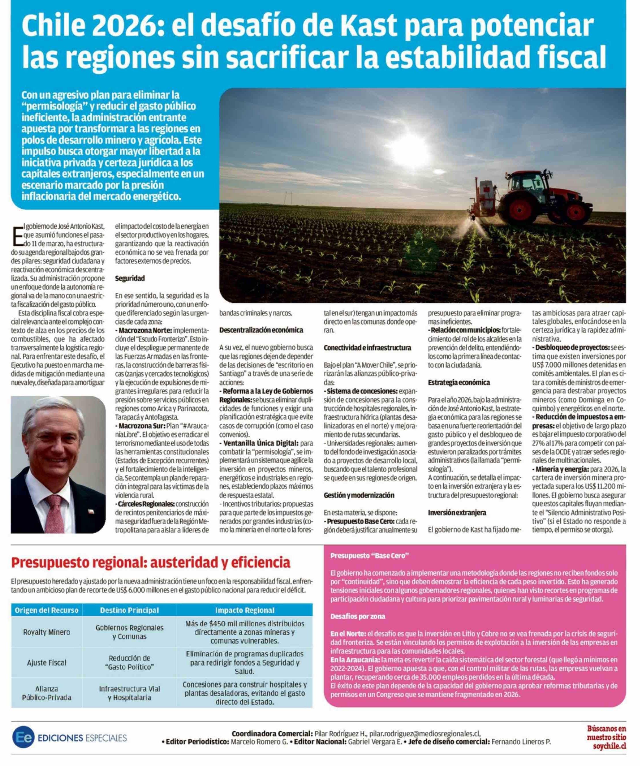 Chile 2026: el desafío de Kast para potenciar las regiones sin sacrificar la estabilidad fiscal