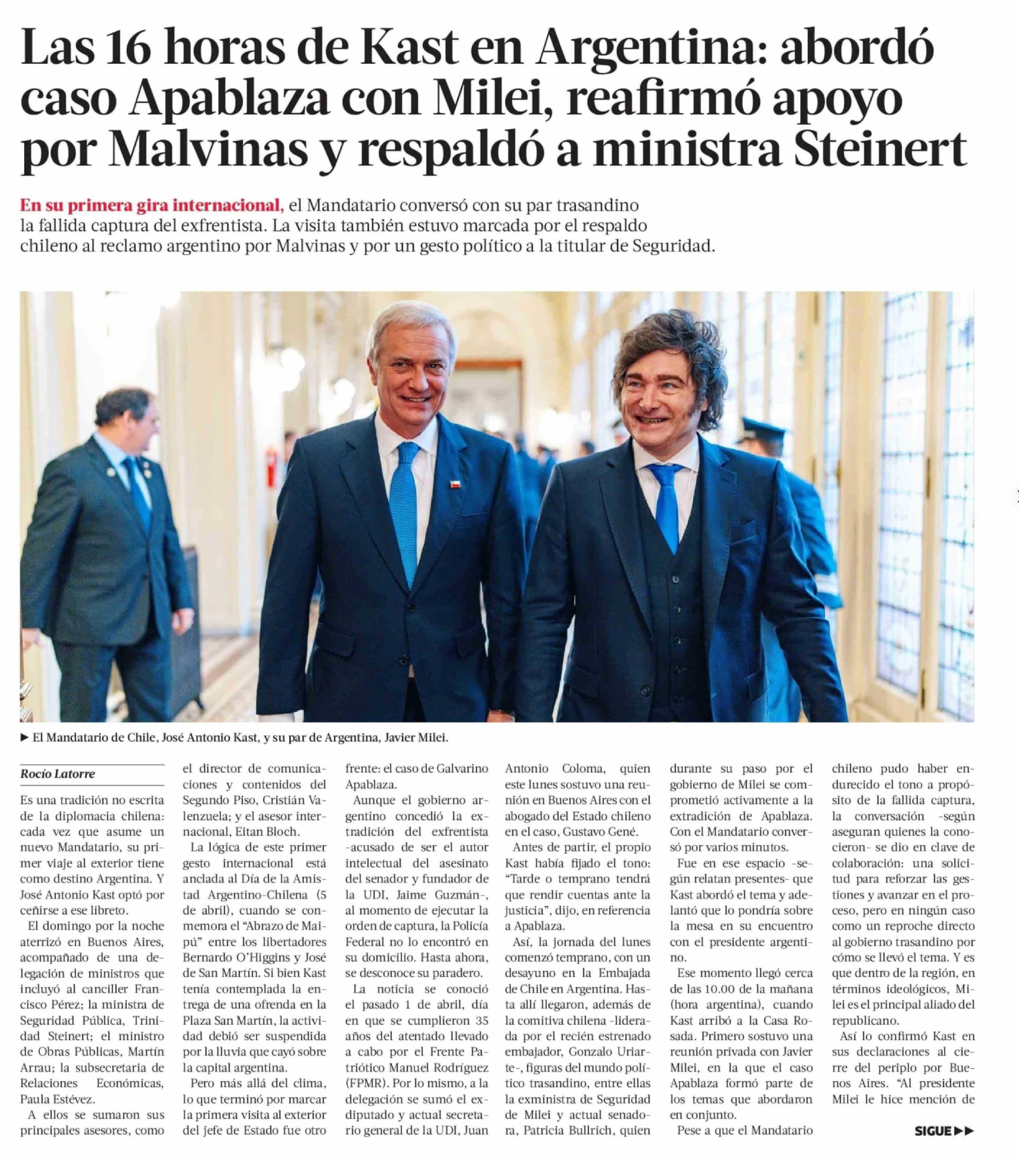 Las 16 horas de Kast en Argentina: abordó caso Apablaza con Milei, reafirmó apoyo por Malvinas y respaldó a ministra Steinert