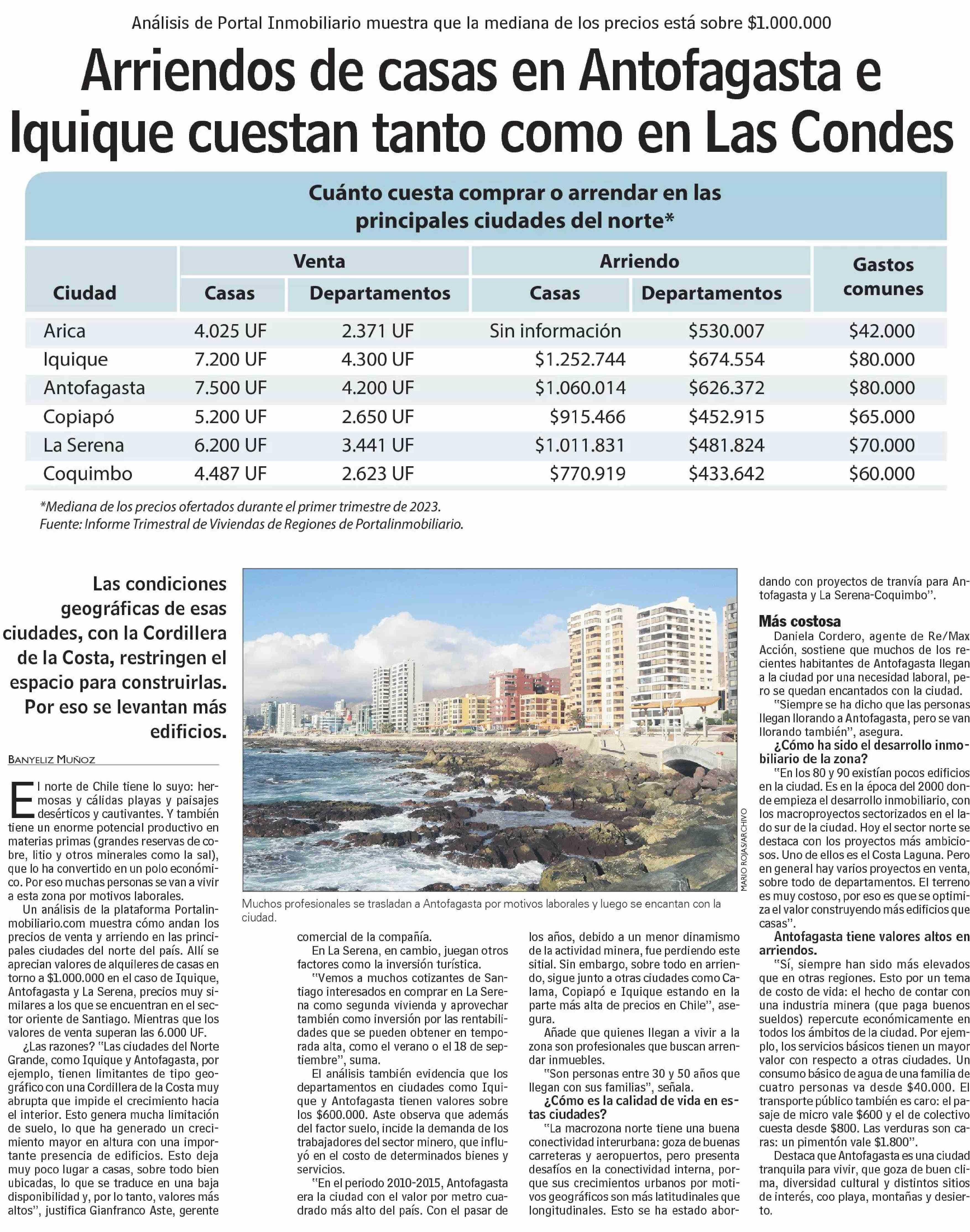 Arriendos de casas en Antofagasta e Iquique cuestan tanto como en Las Condes