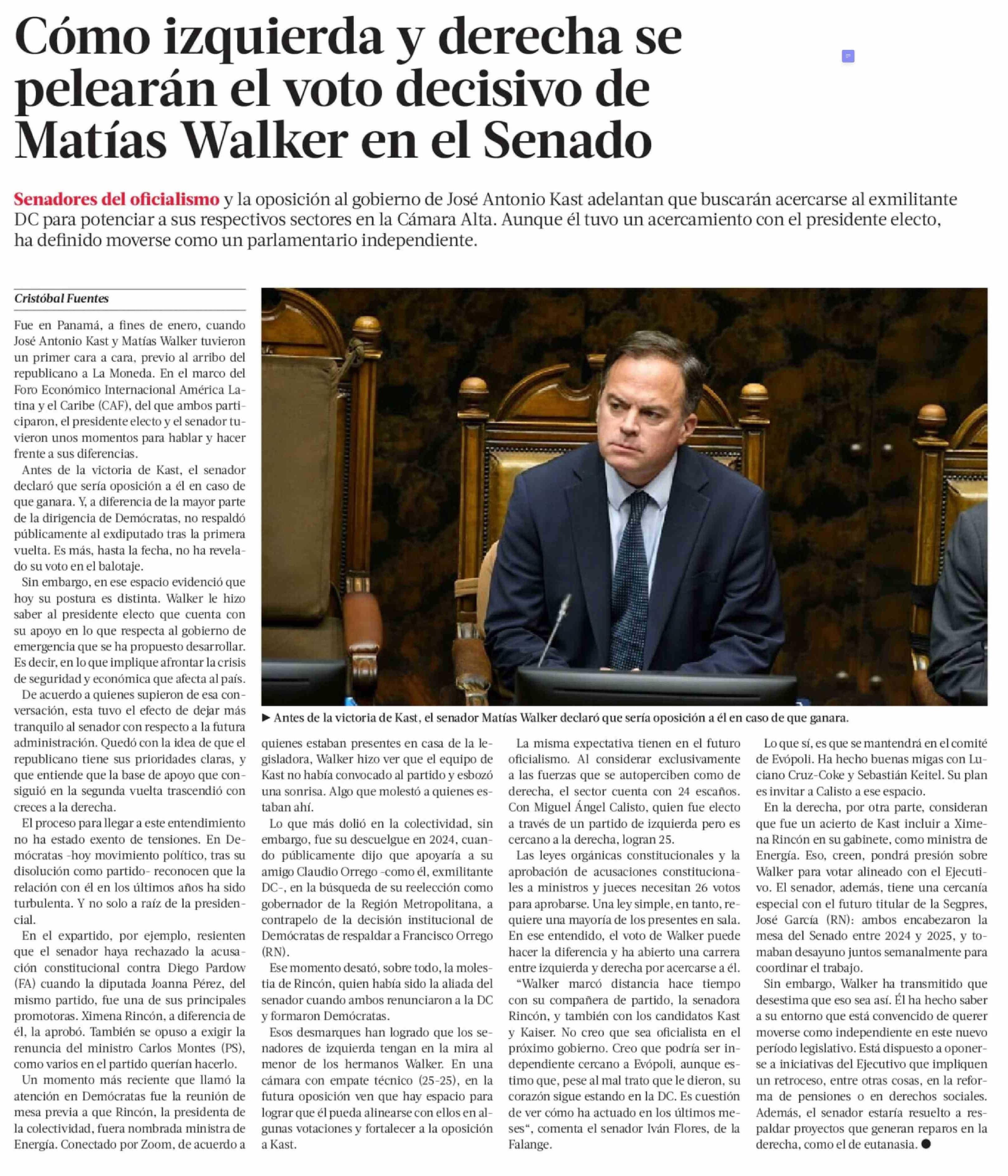 Cómo izquierda y derecha se pelearán el voto decisivo de Matías Walker en el Senado