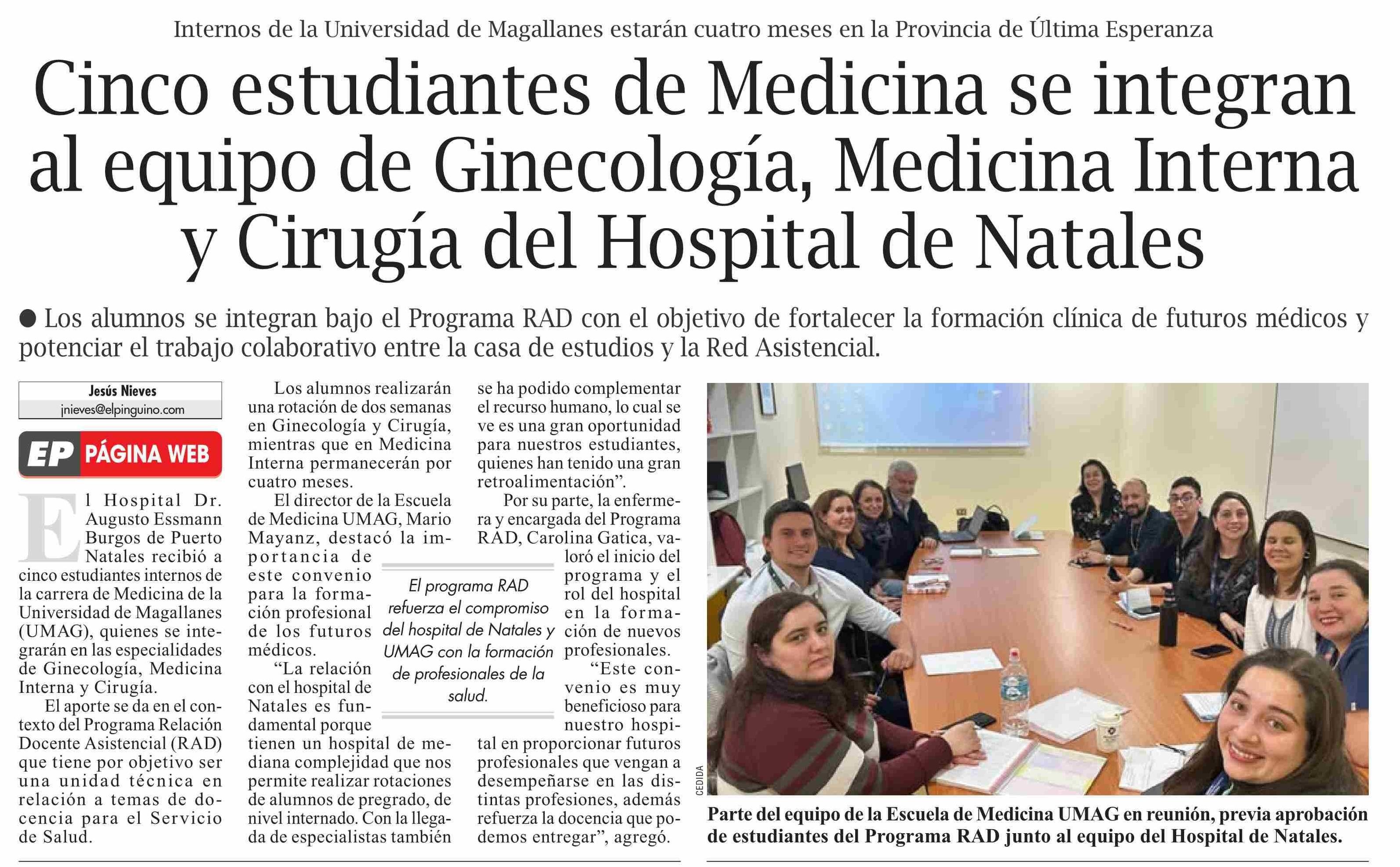 Título: Cinco estudiantes de Medicina se integran al equipo de Ginecología, Medicina Interna y Cirugía del Hospital de Natales
