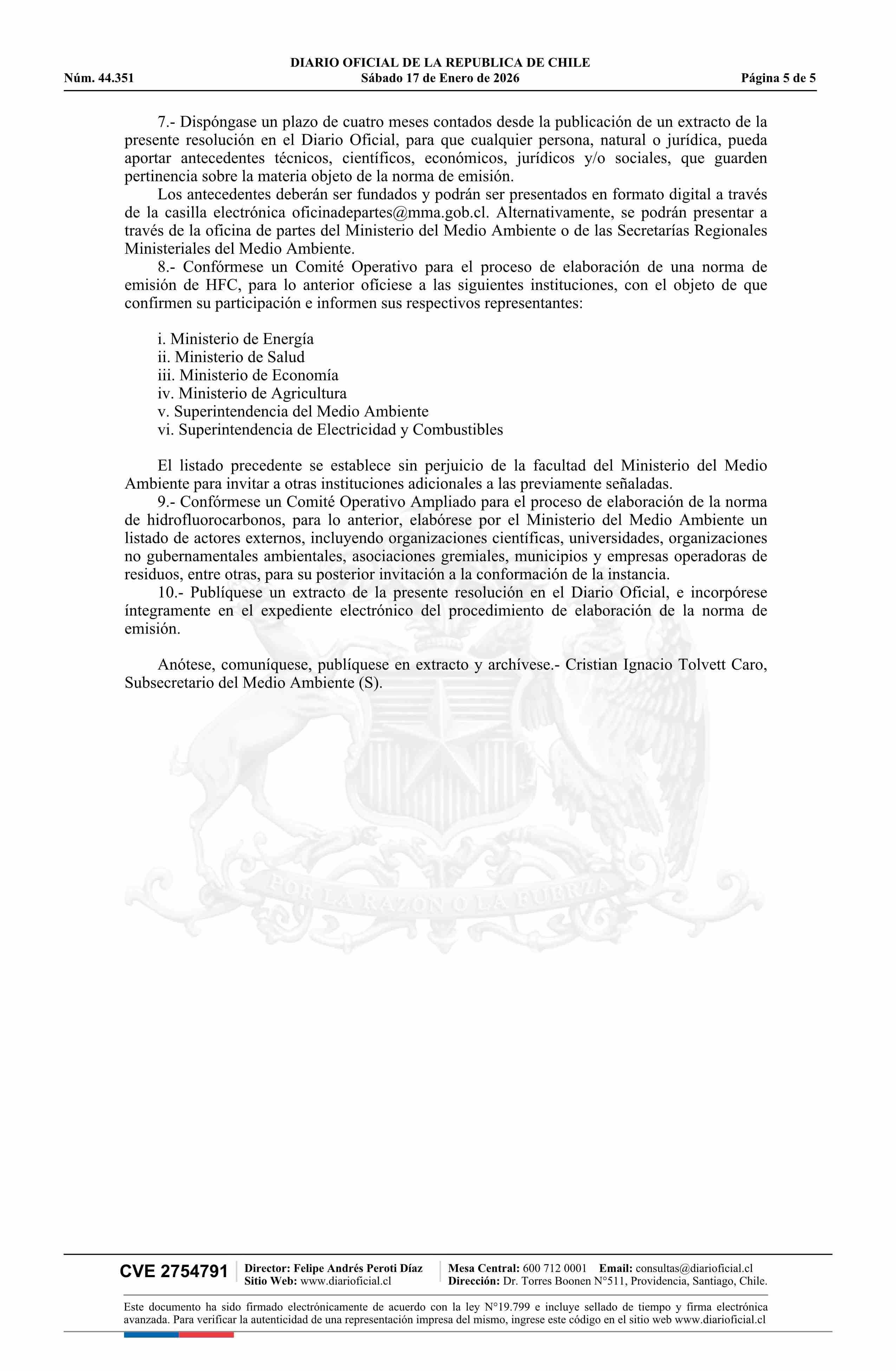 | Título: | Resolución exenta número 9.634, de 2025.- Da inicio al procedimiento de elaboración del anteproyecto de la Norma de Emisión de Hidrofluorocarbonos |