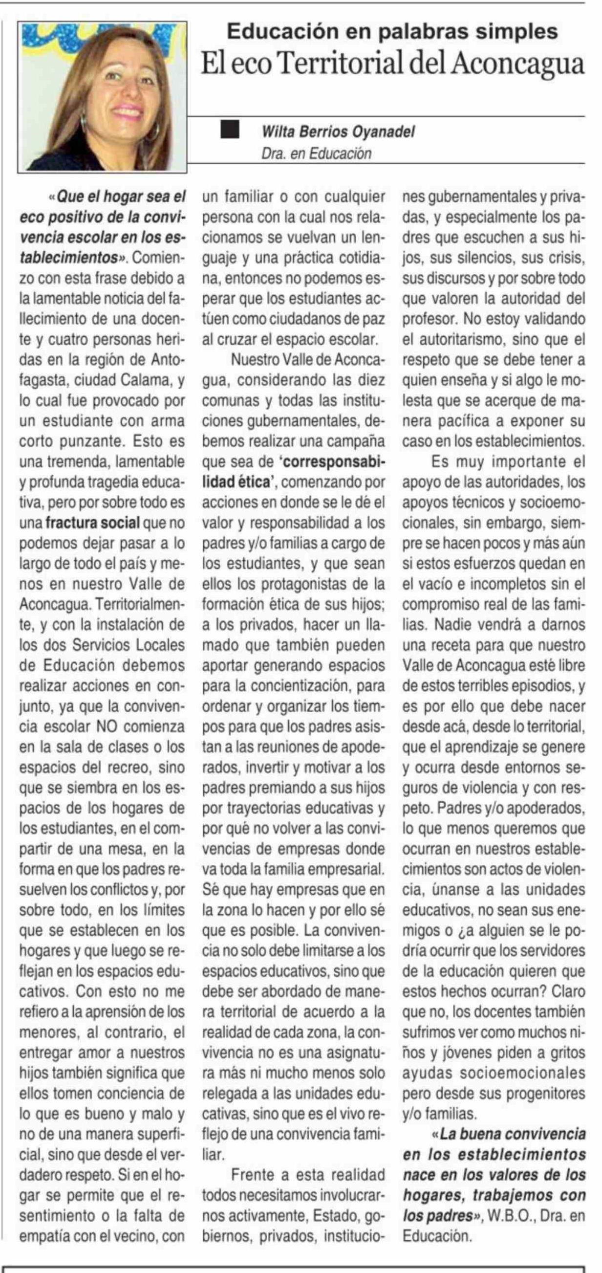 Columnas de Opinión: Educación en palabras simples El eco Territorial del Aconcagua