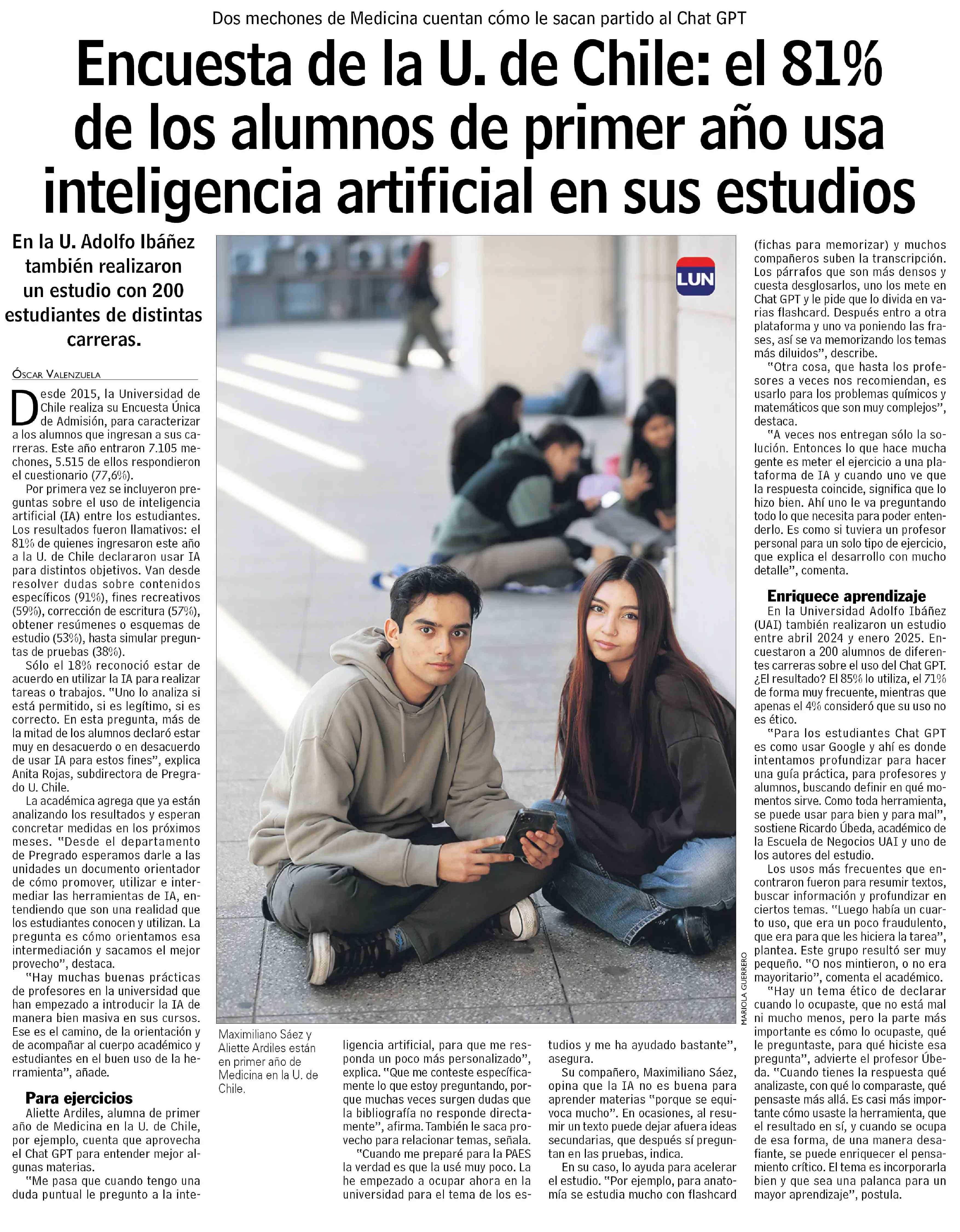 Encuesta de la U. de Chile: el 81% de los alumnos de primer año usa inteligencia artificial en sus estudios