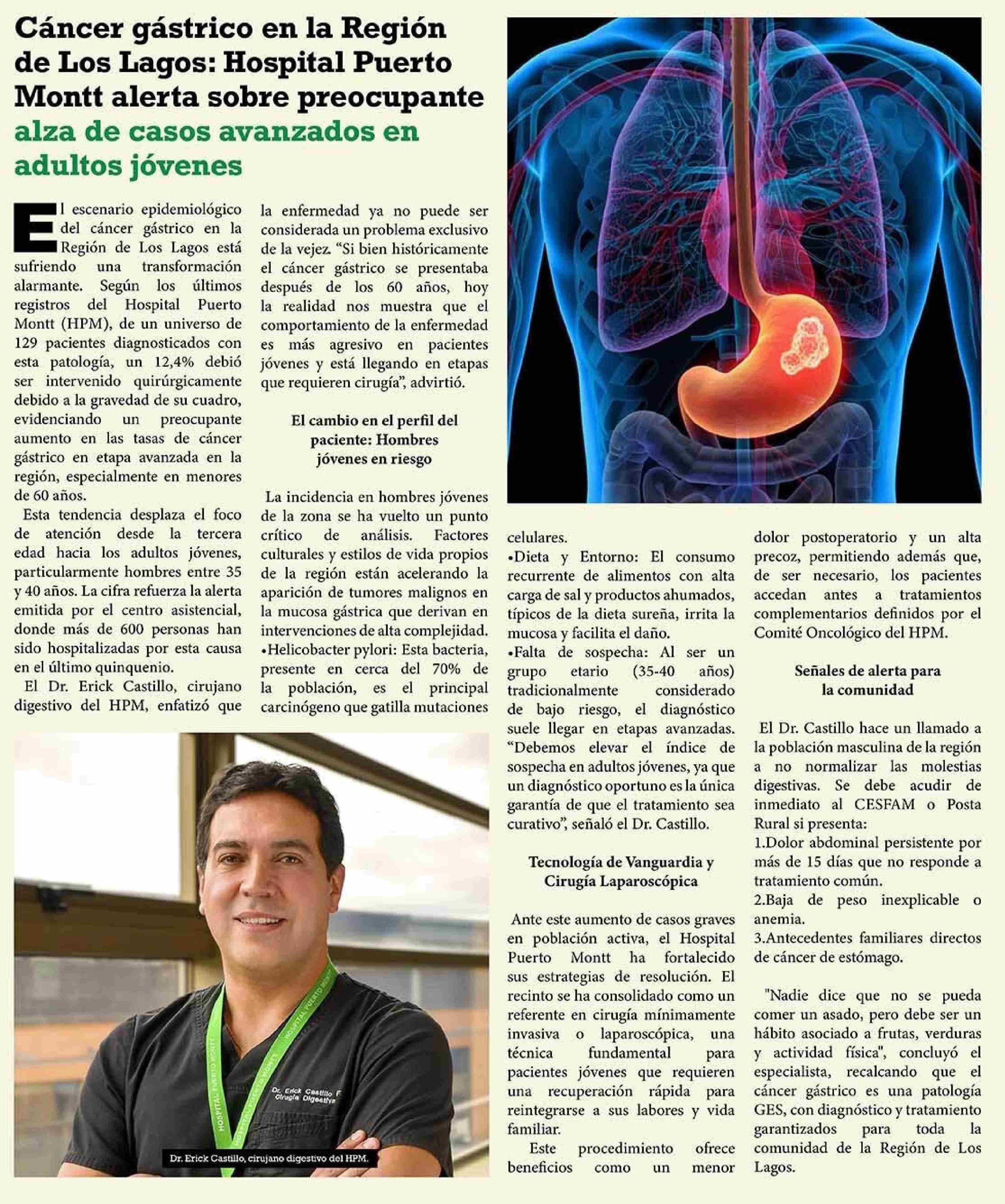 Título: Cáncer gástrico en la Región de Los Lagos: Hospital Puerto Montt alerta sobre preocupante alza de casos avanzados en adultos jóvenes