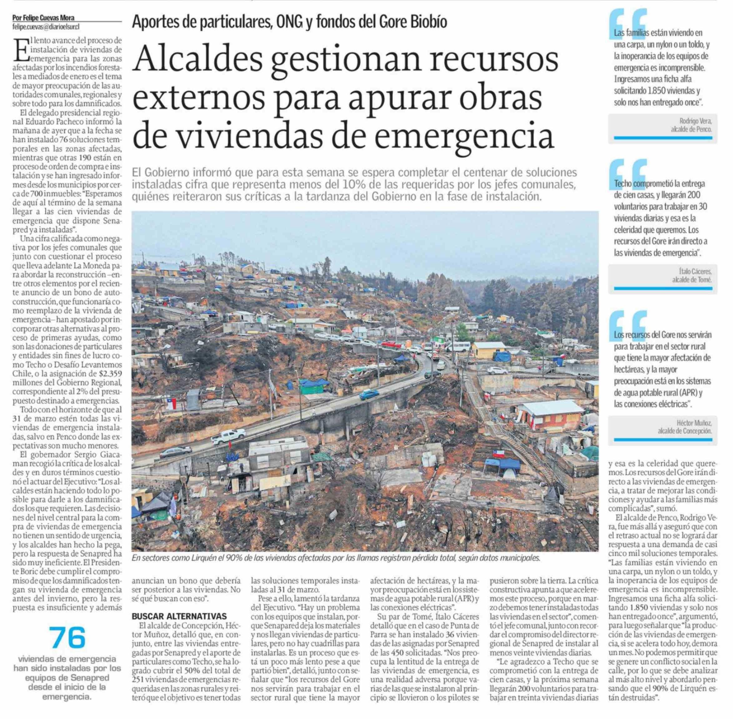 Alcaldes gestionan recursos externos para apurar obras de viviendas de emergencia