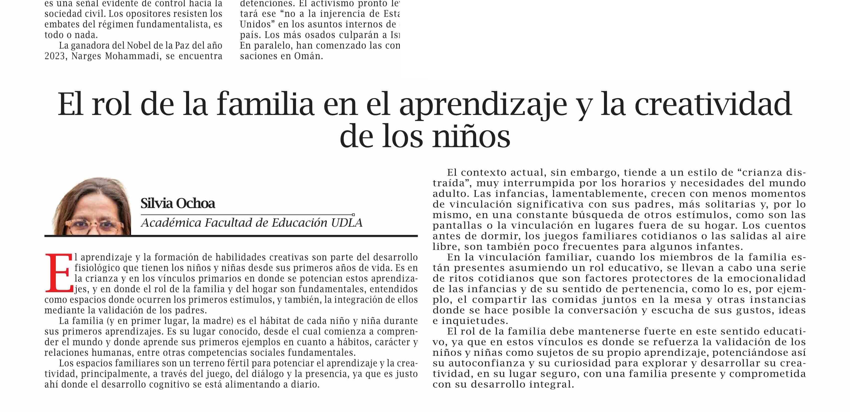 COLUMNAS DE OPINIÓN: El rol de la familia en el aprendizaje y la creatividad de los niños