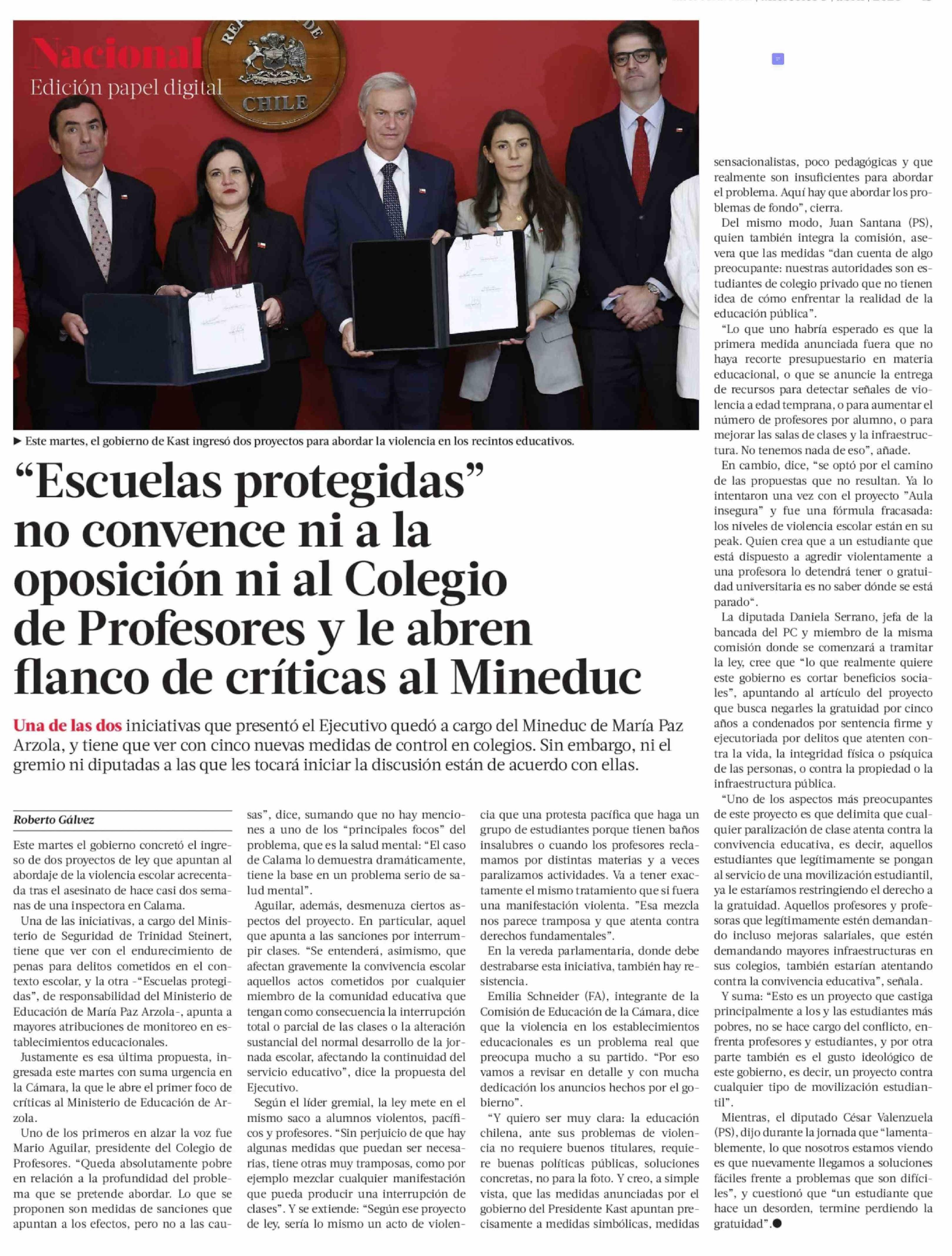 "Escuelas protegidas" no convence ni a la oposición ni al Colegio de Profesores y le abren flanco de críticas al Mineduc