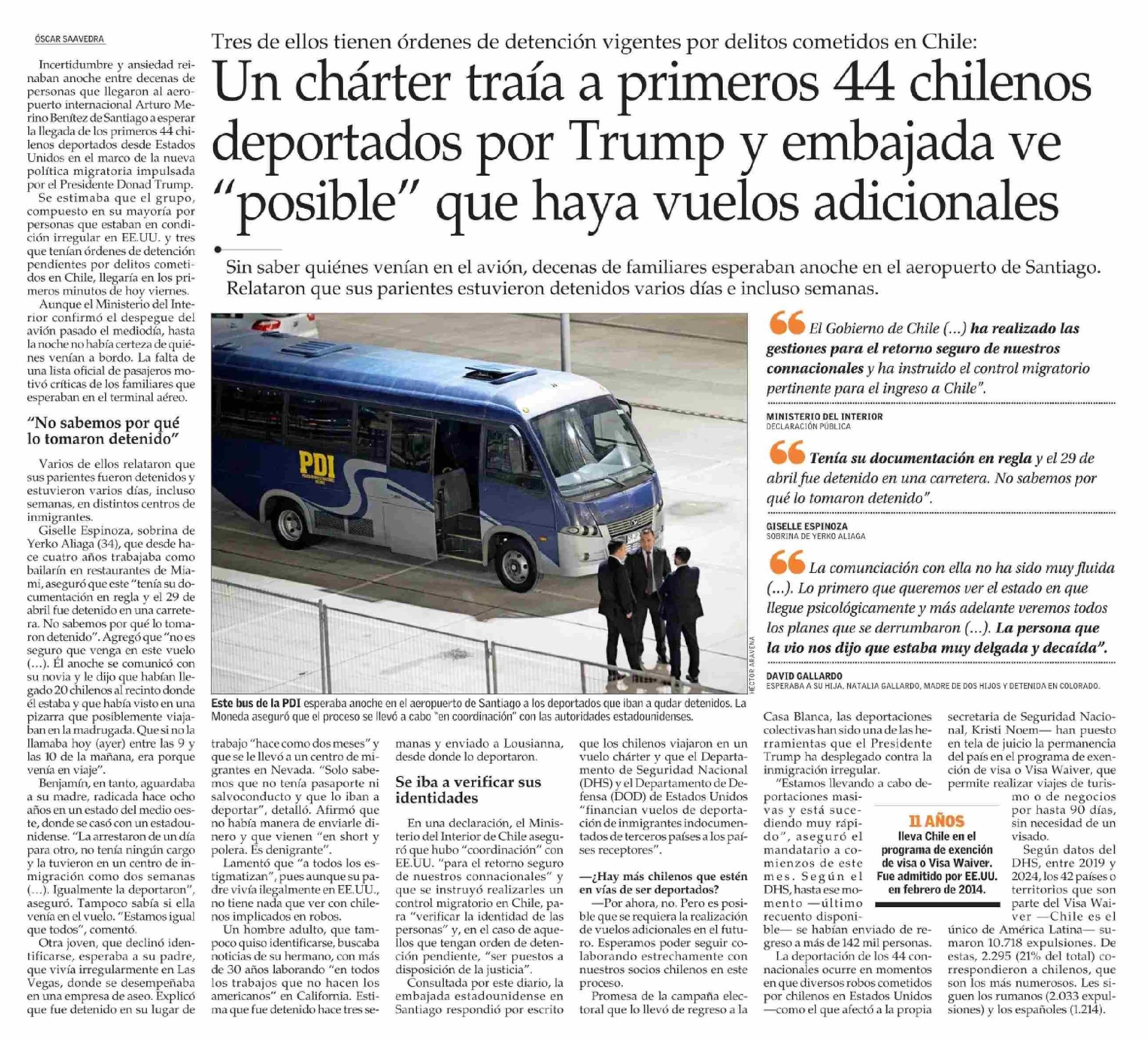 Un chárter traía a primeros 44 chilenos deportados por Trump y embajada ve “posible” que haya vuelos adicionales