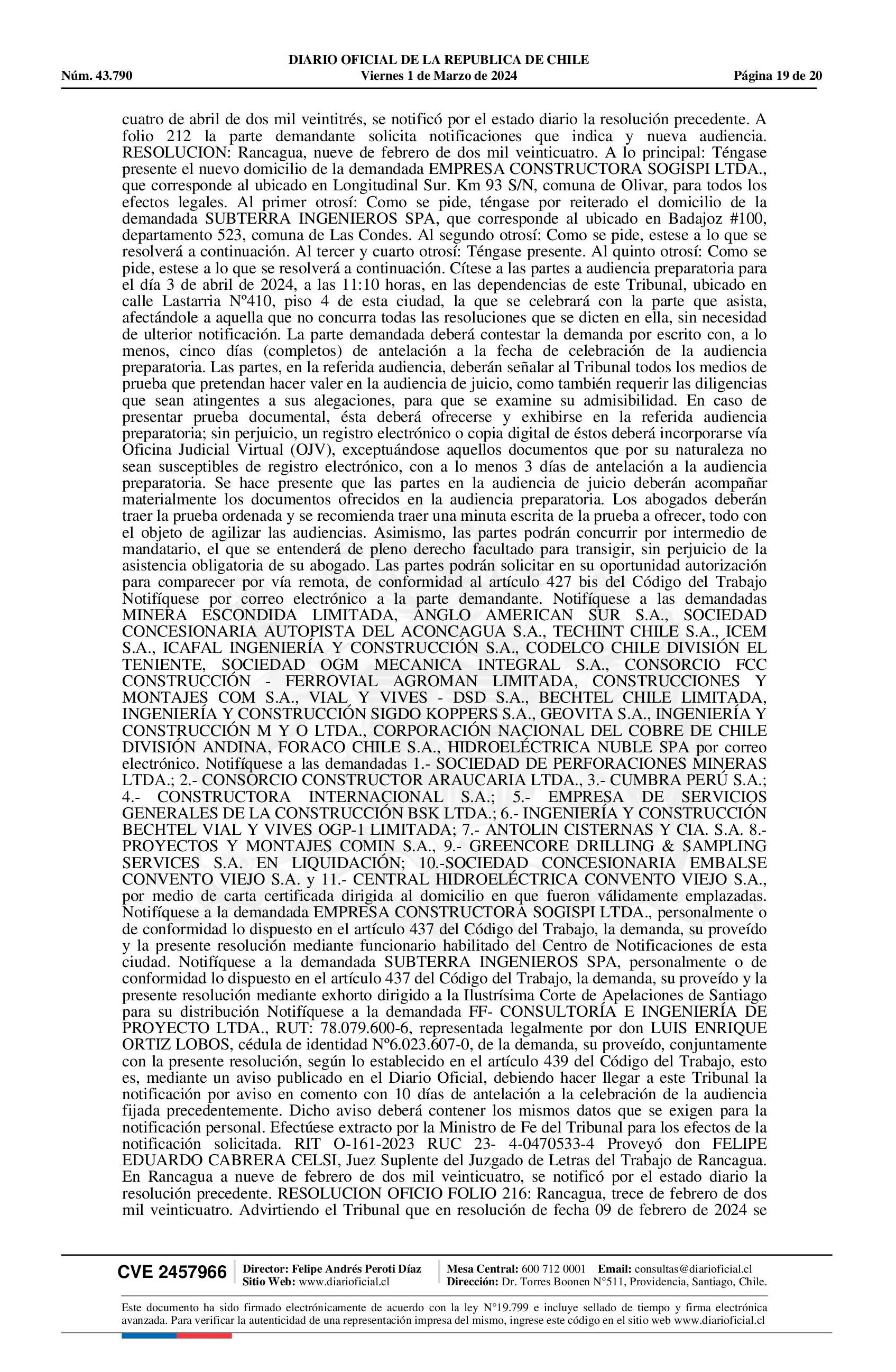 | Fuente: | Diario Oficial Edición Electrónica (Diario Oficial de Chile - 3 Public. Judiciales) | Página(s): | 243-262 |