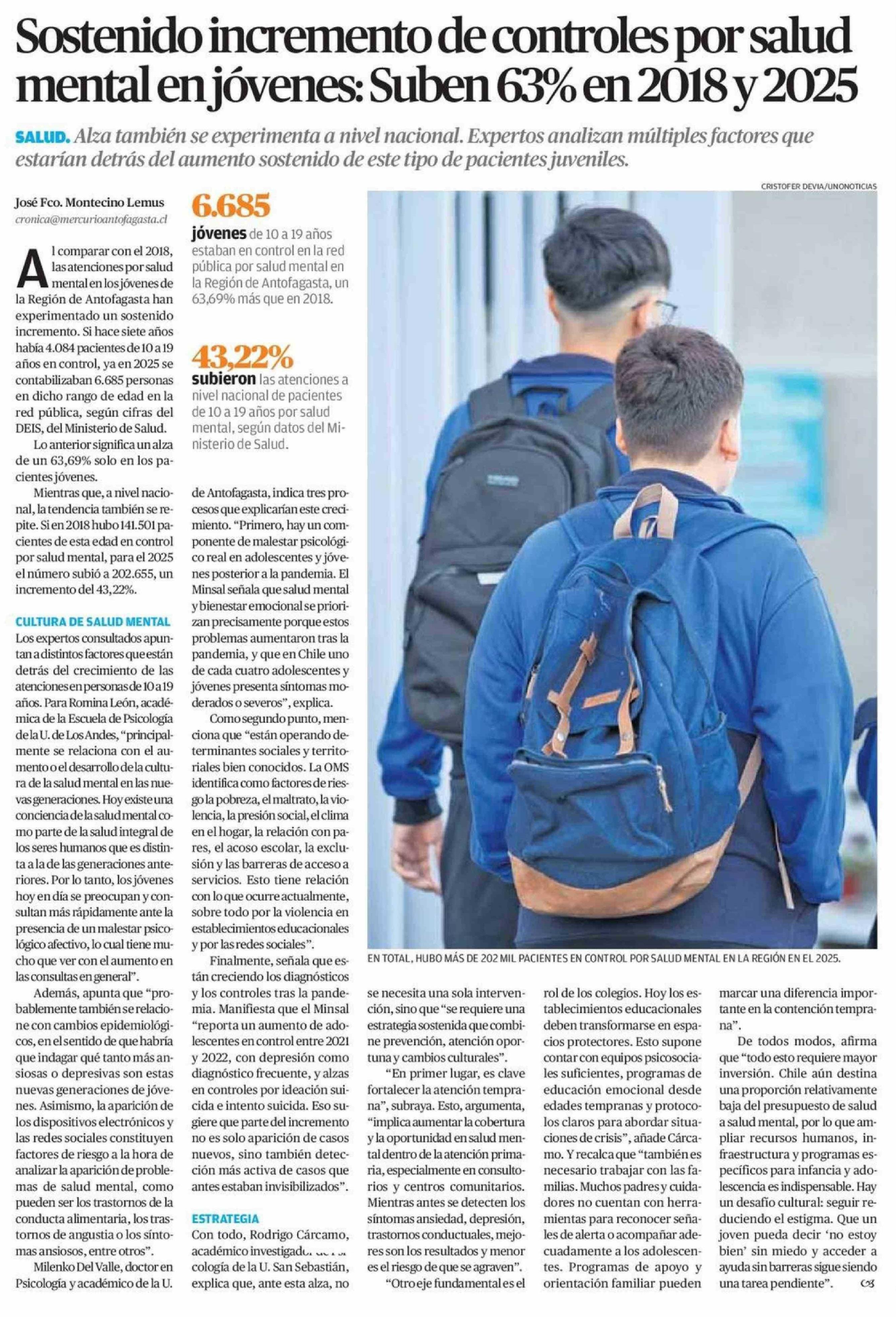 Sostenido incremento de controles por salud mental en jóvenes: Suben 63% en 2018 y 2025