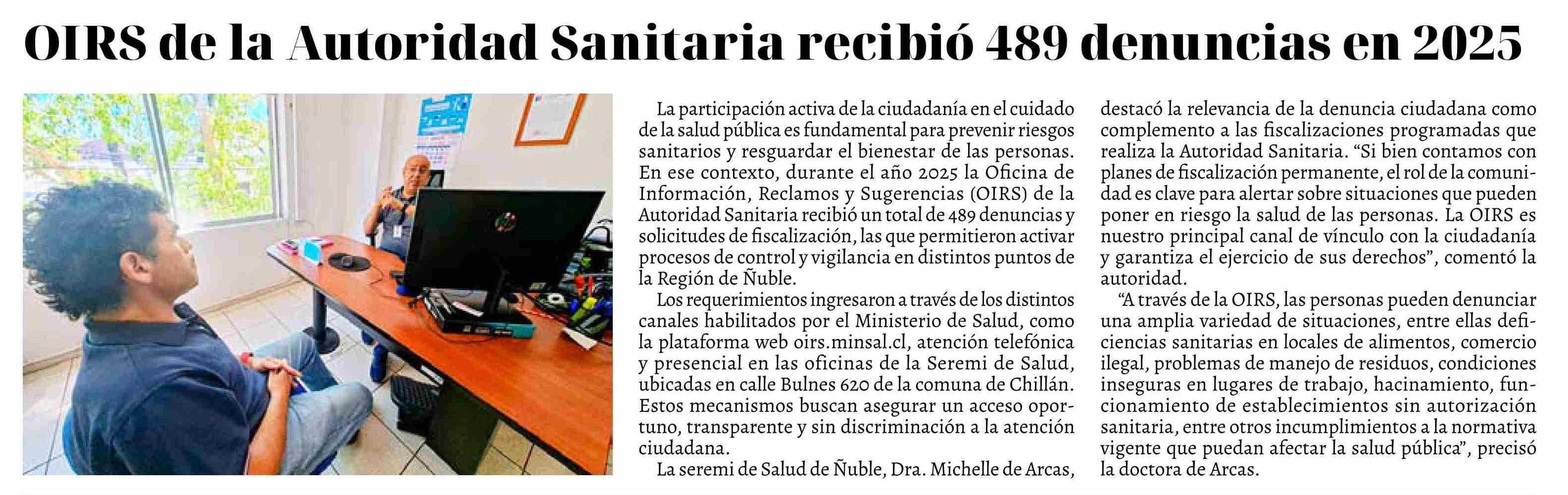 OIRS de la Autoridad Sanitaria recibió 489 denuncias en 2025