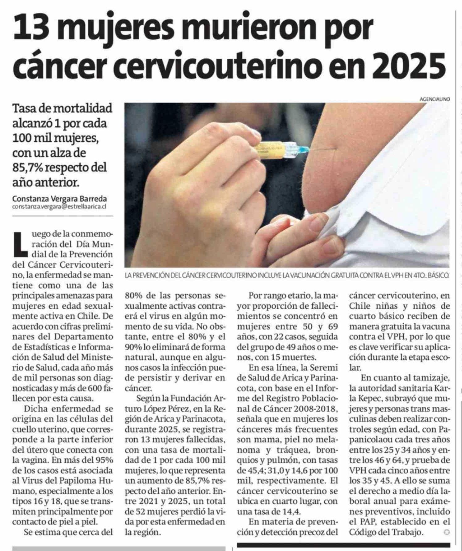 Título: 13 Mujeres murieron por cáncer cervicouterino en 2025